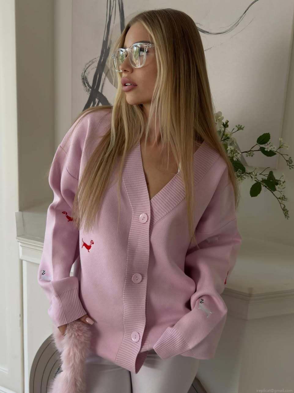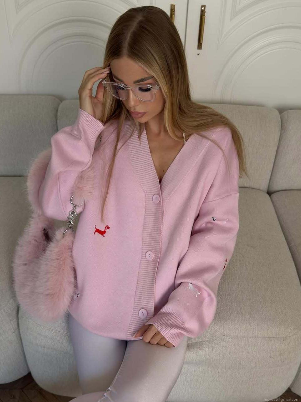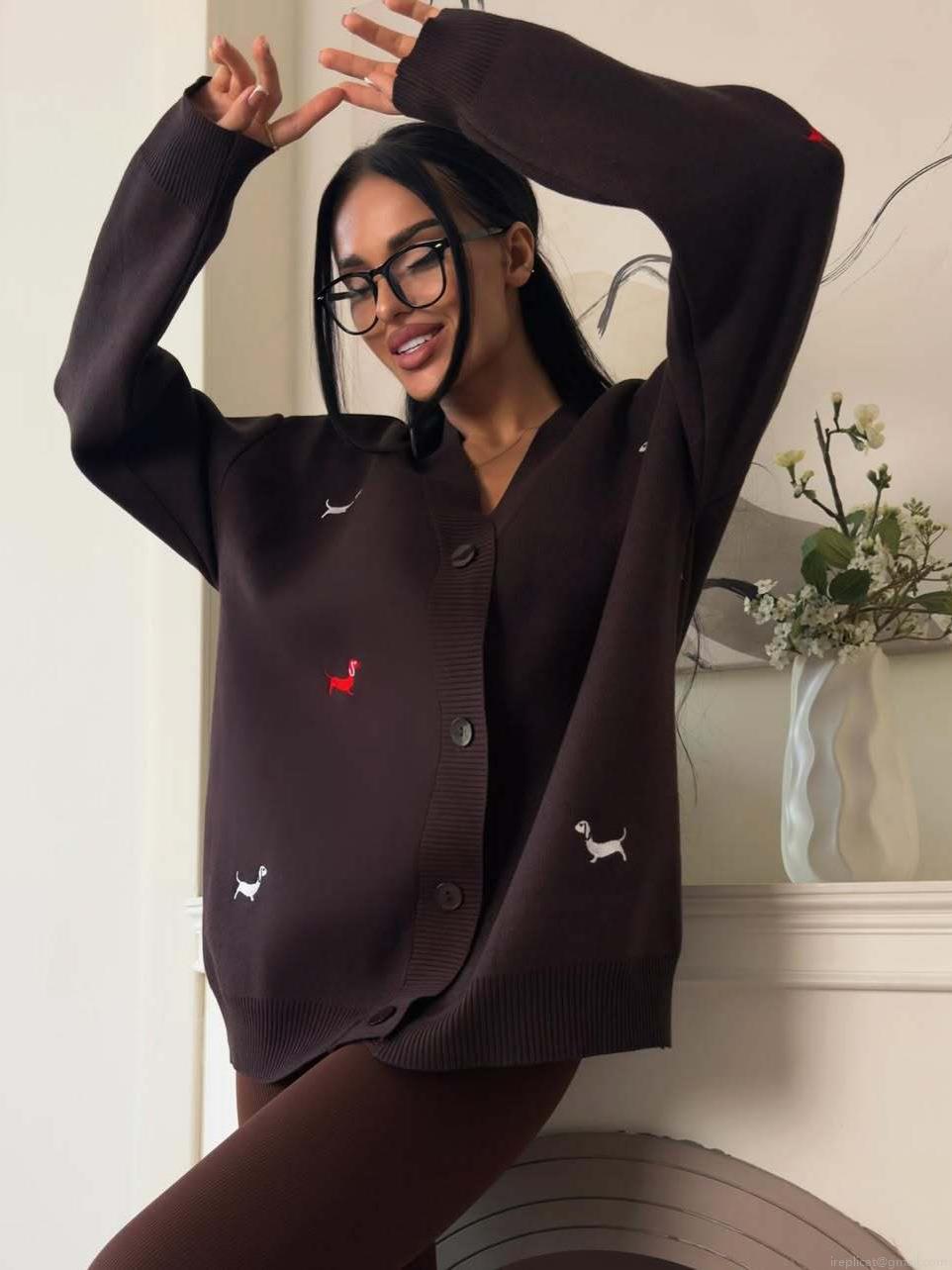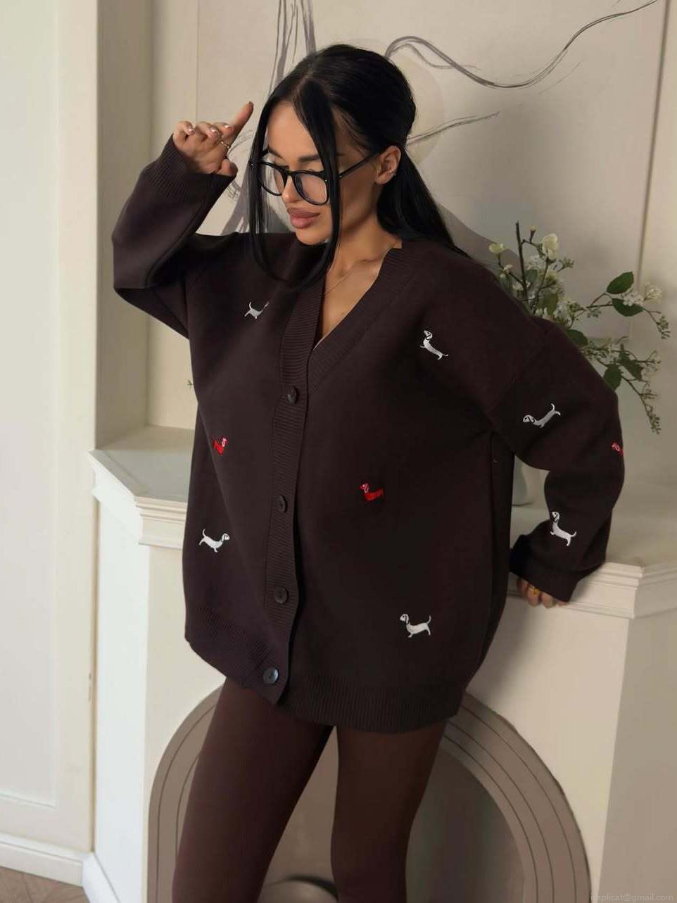• Women's Oversized V-Neck Knit Cardigan Sweater Cotton Blend Dachshund Embroidery Long Sleeve Button Up Outerwear Loose Fit Soft Knitwear For Fall Winter Casual Daily Wear
