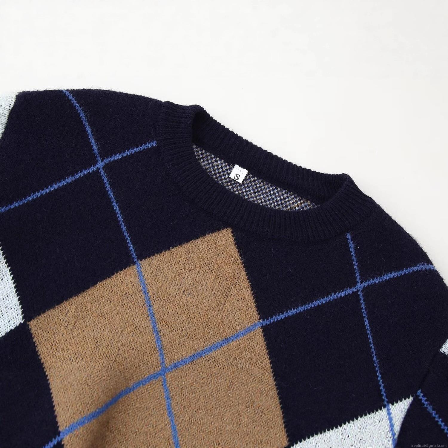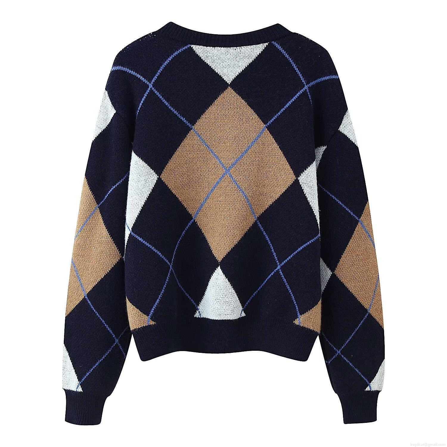 • Women's Polyester Argyle Plaid Pattern Round Neck Long Sleeve Pullover Sweater Geometric Color Block Knitwear Casual Streetwear Top Autumn Winter