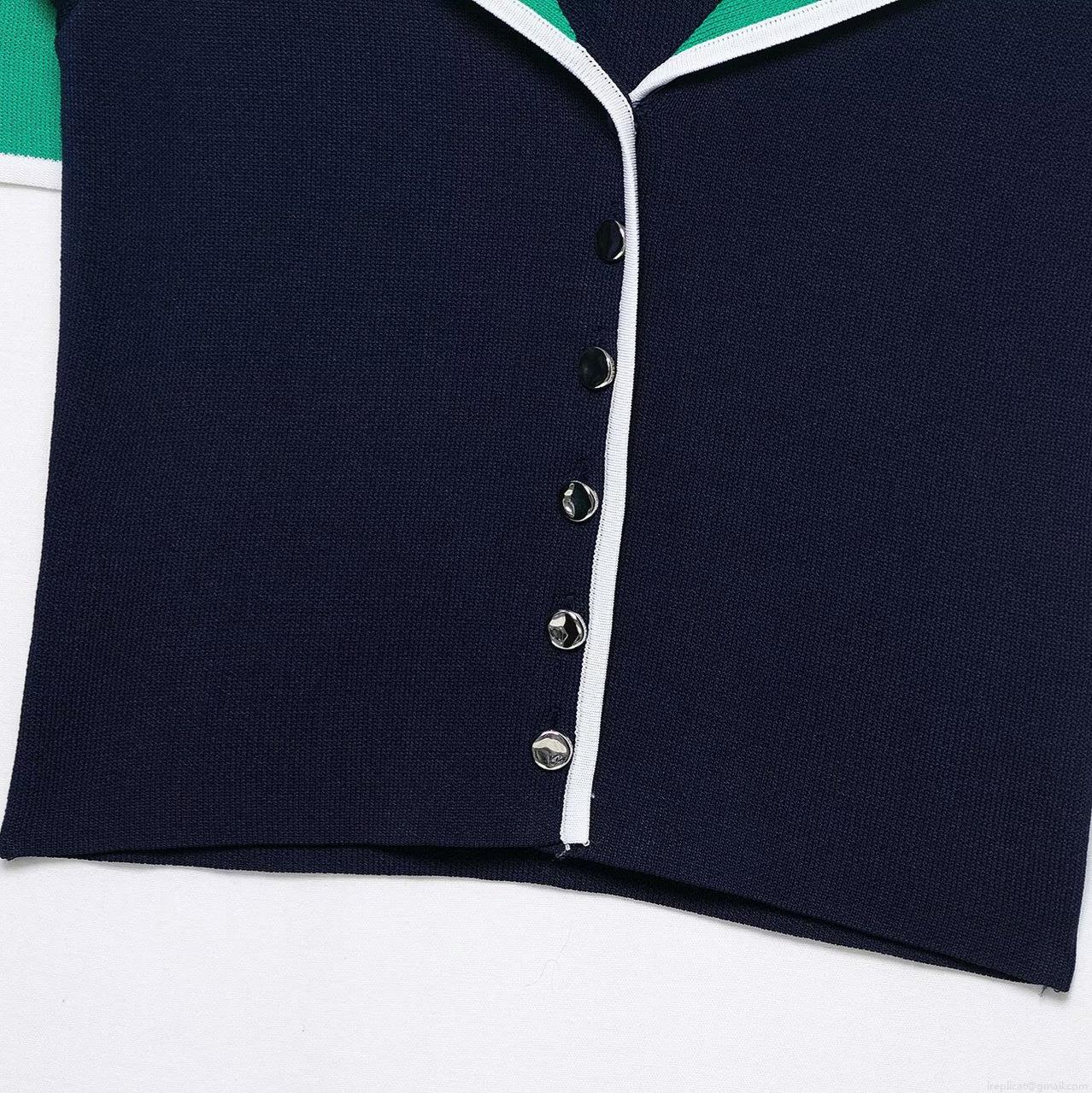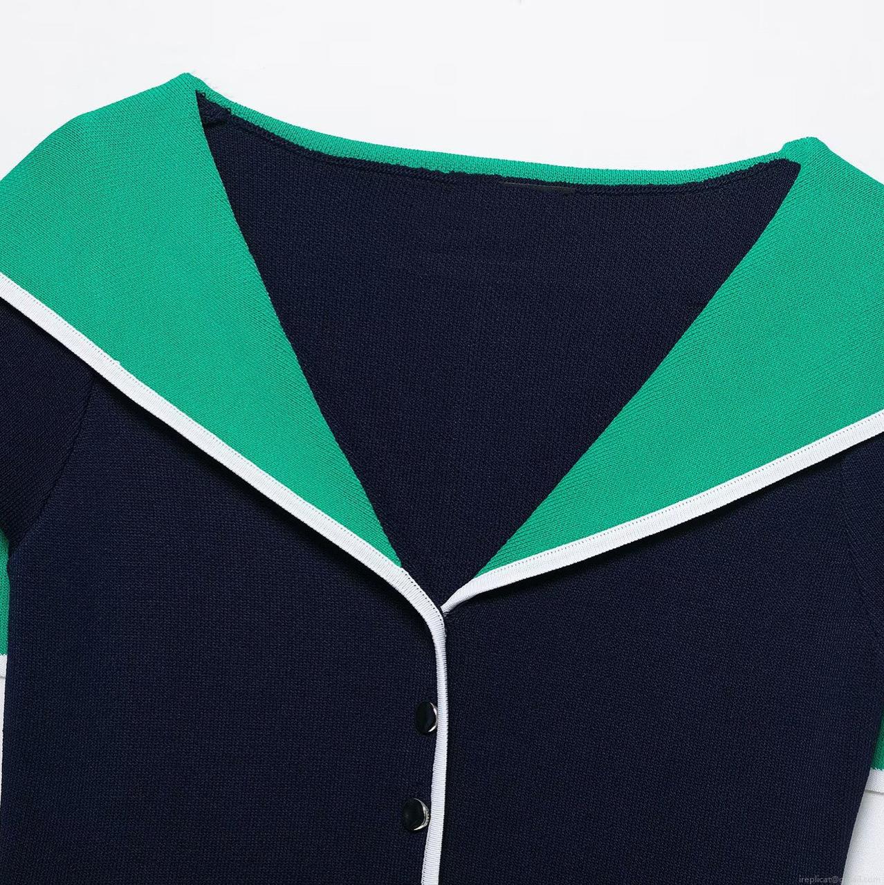 • Women's Preppy Style Sailor Collar Knit Cardigan Contrast Color Short Sleeve V-Neck Button Up Knitted Crop Top Slim Fit Sweater For Daily Wear