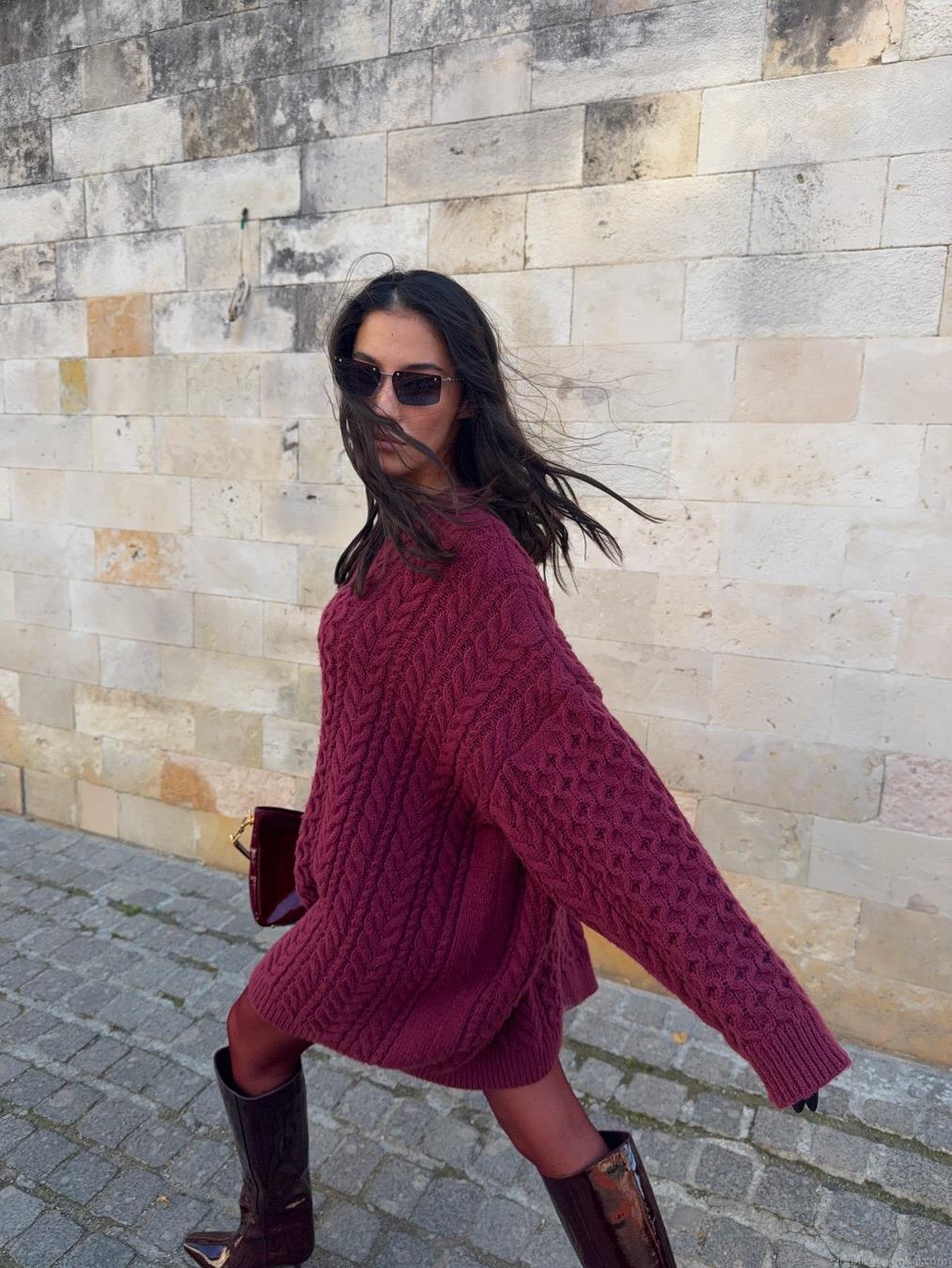 • Women's Retro Cable Knit Sweater Loose Oversized Round Neck Long Sleeve Pullover Cotton Blend Autumn Winter Casual Knitwear Top