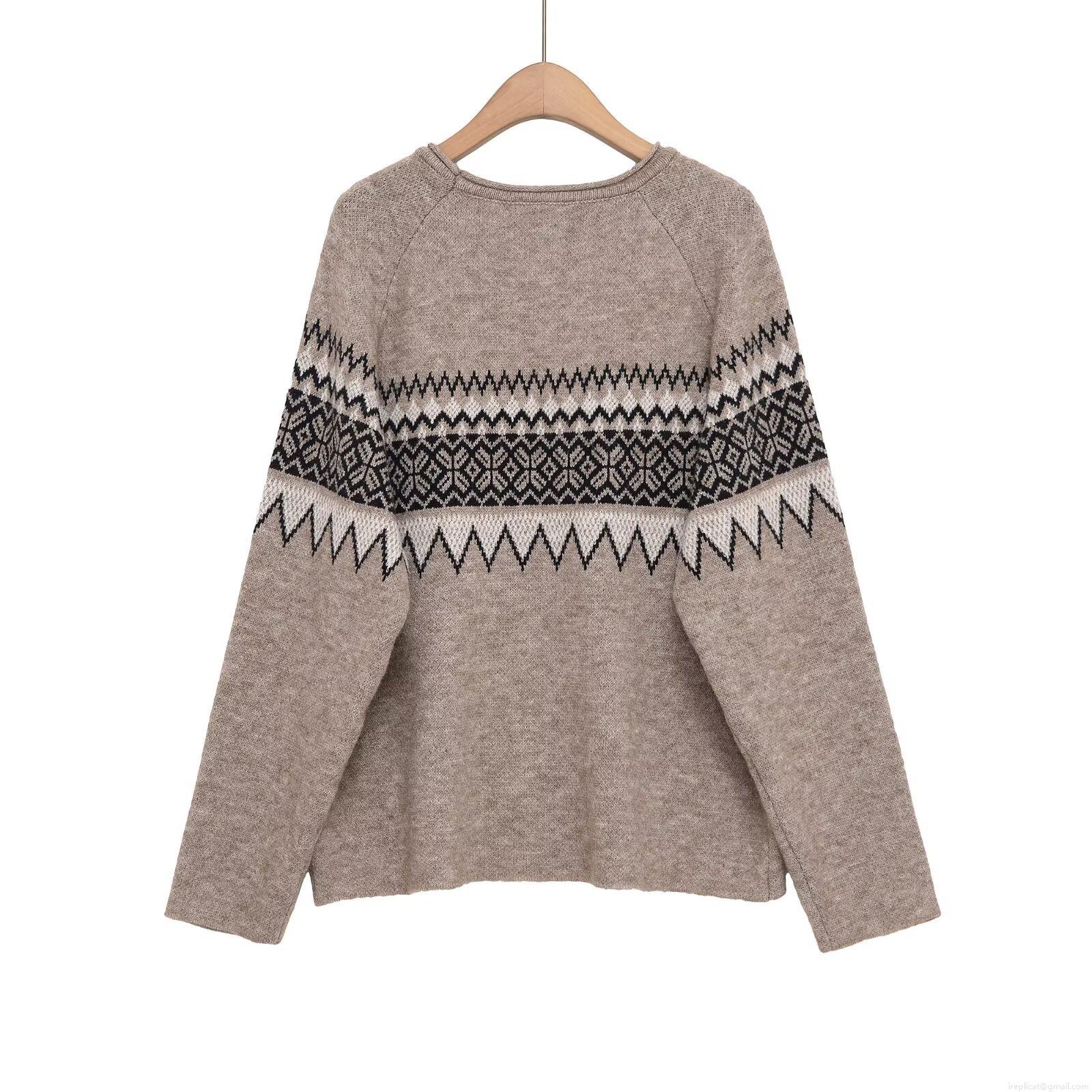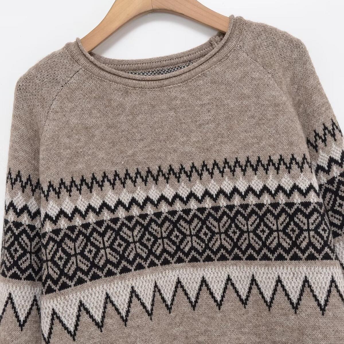 • Women's Retro Fair Isle Geometric Jacquard Knit Sweater Loose Crew Neck Long Sleeve Polyester Pullover Autumn Winter Warm Casual Top
