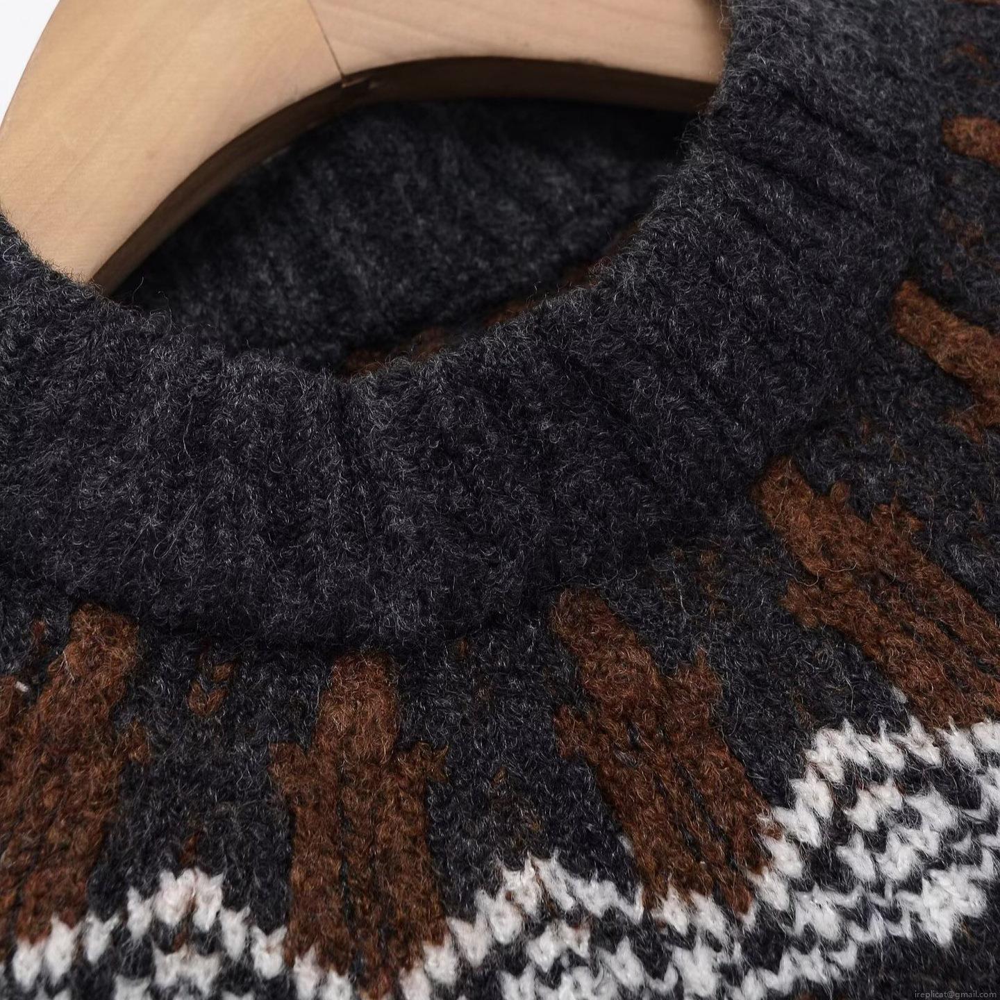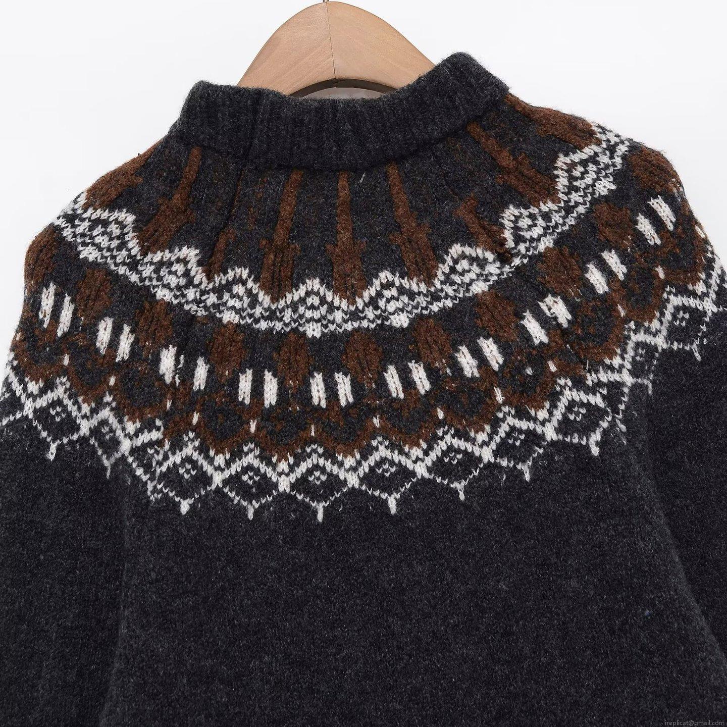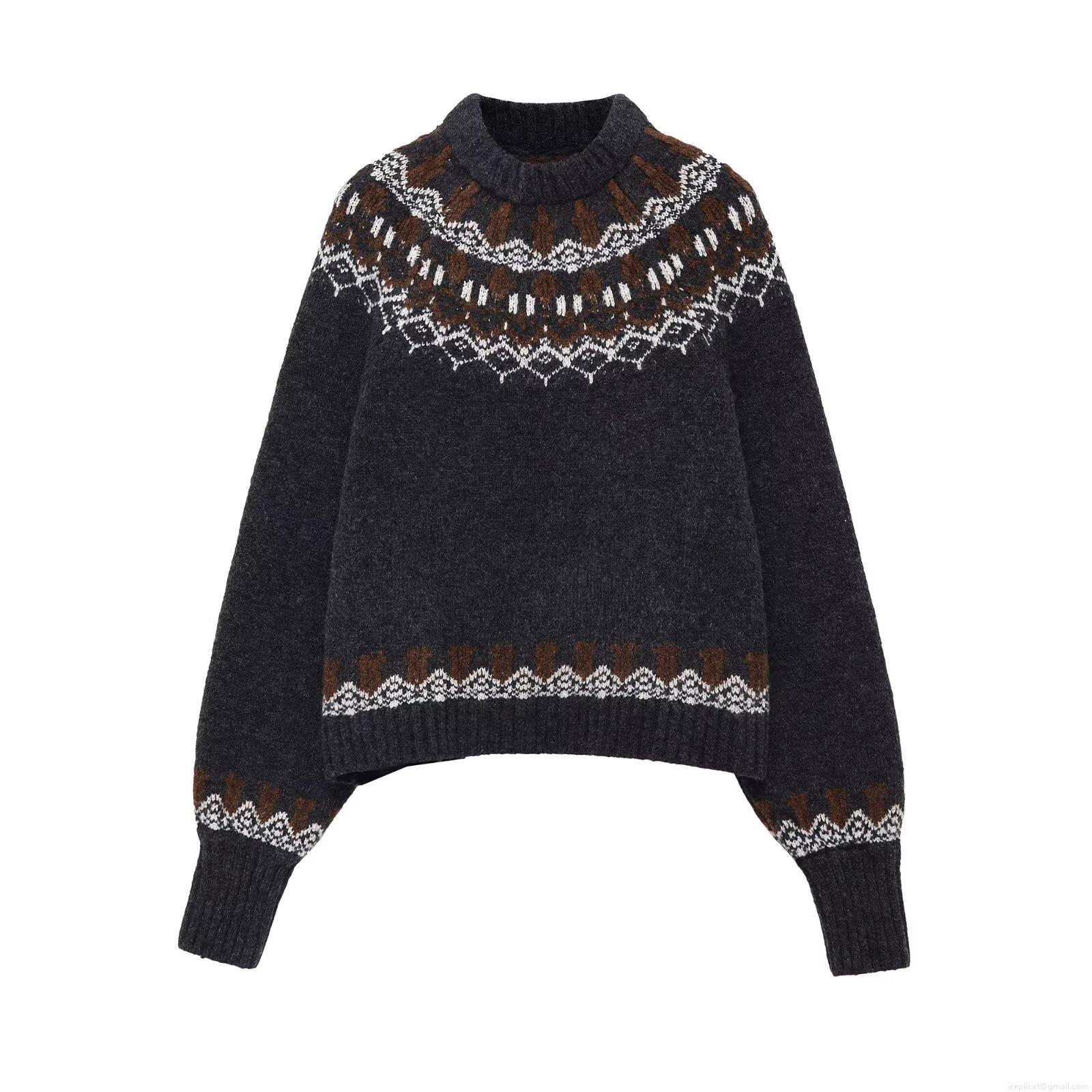 • Women's Retro Fair Isle Jacquard Knit Sweater Round Neck Long Sleeve Loose Casual Pullover Warm Winter Tops
