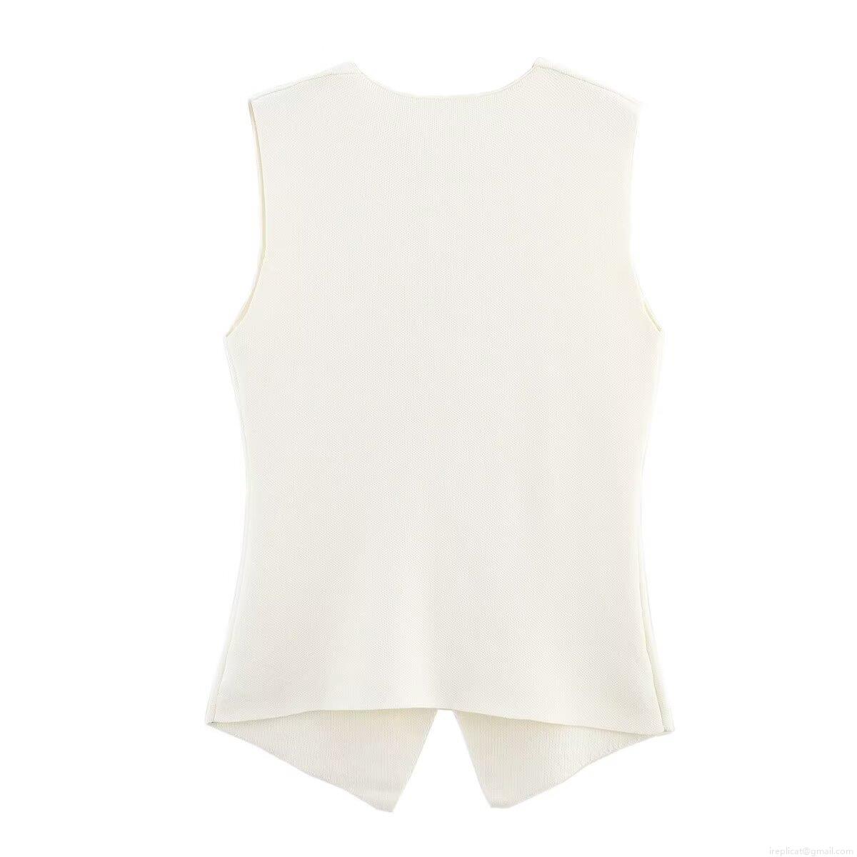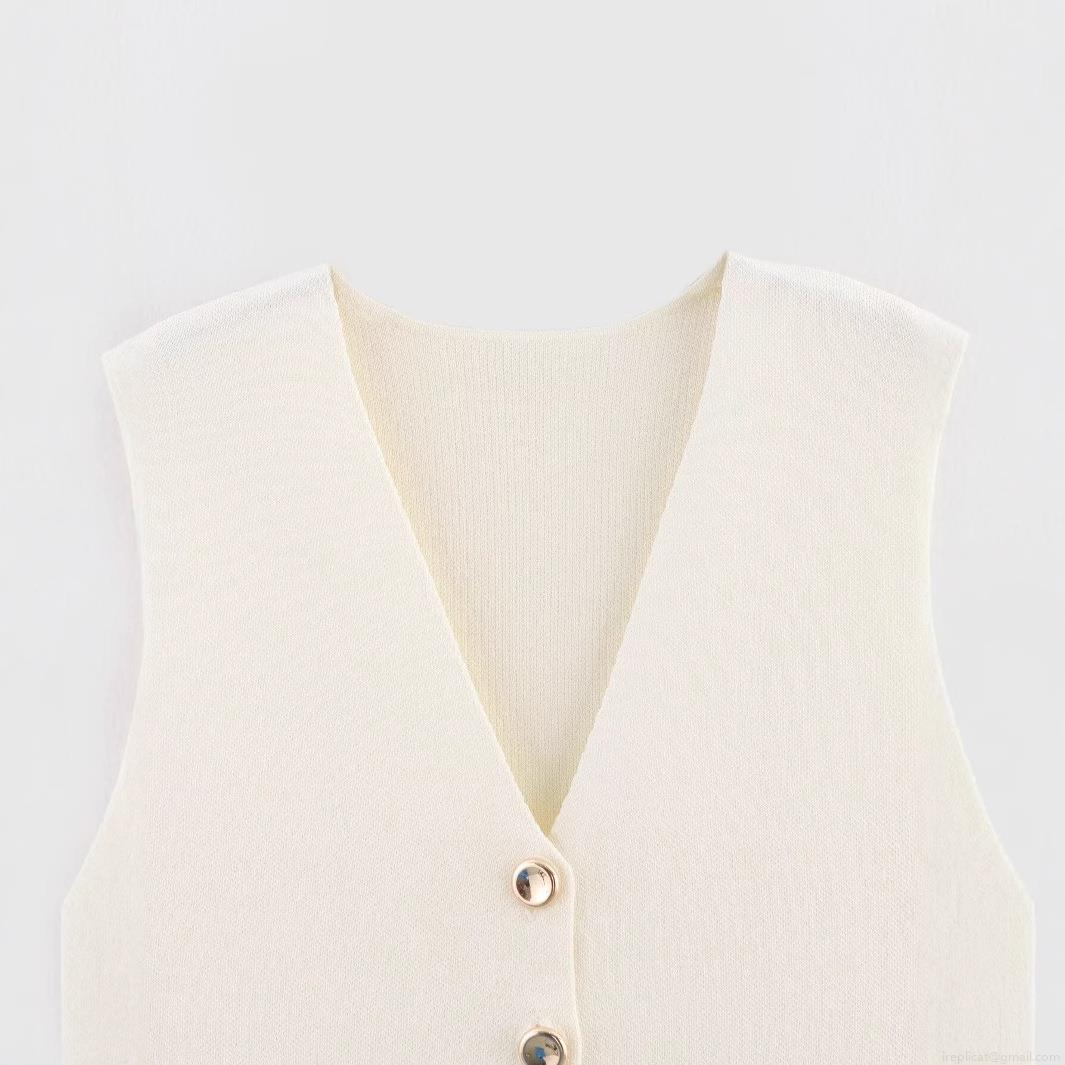 Solid Color, V-neck, High Elasticity, Single-breasted, Metallic Buttons, Inverted V Hem