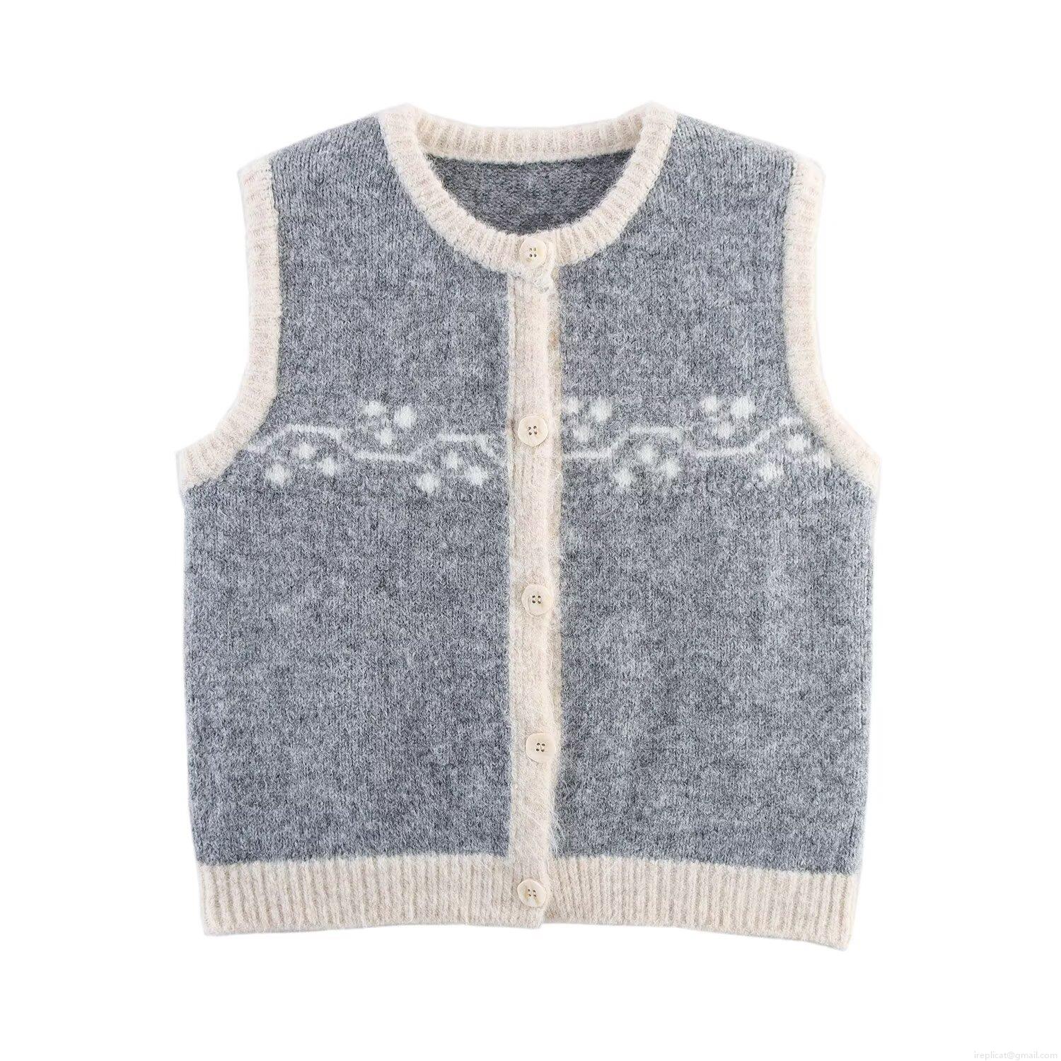 • Women's Retro Knitted Cardigan Vest 100% Polyester Floral Jacquard Round Neck Sleeveless Sweater For Daily Streetwear Women Clothes