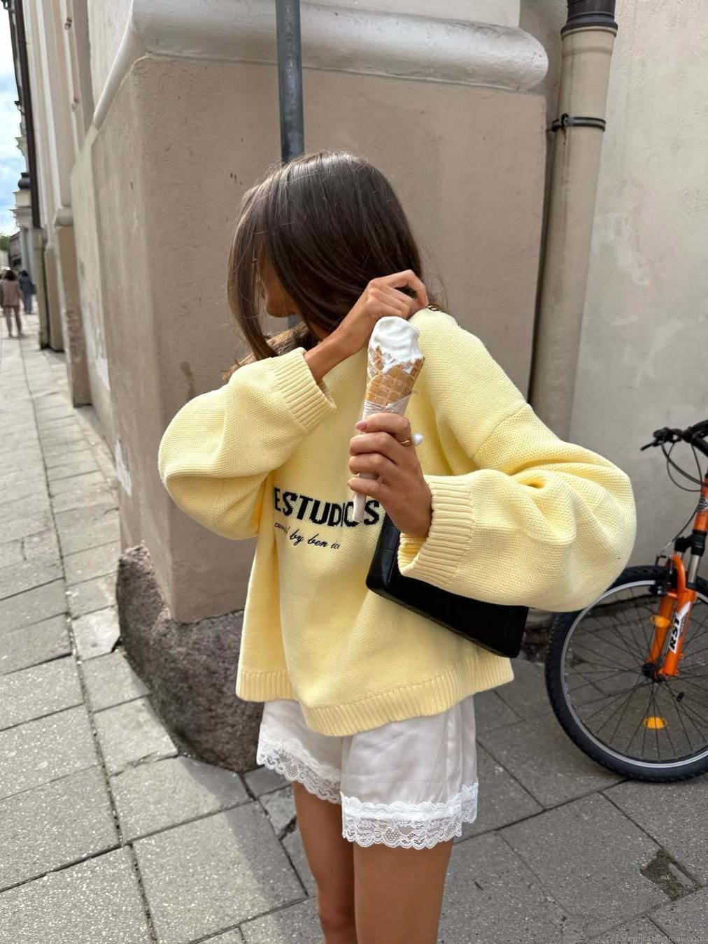 • Women's Retro Letter Knit Sweater Loose Long Sleeve Round Neck Cotton Polyester Blend Pullover Casual Autumn Winter Lazy Style Tops