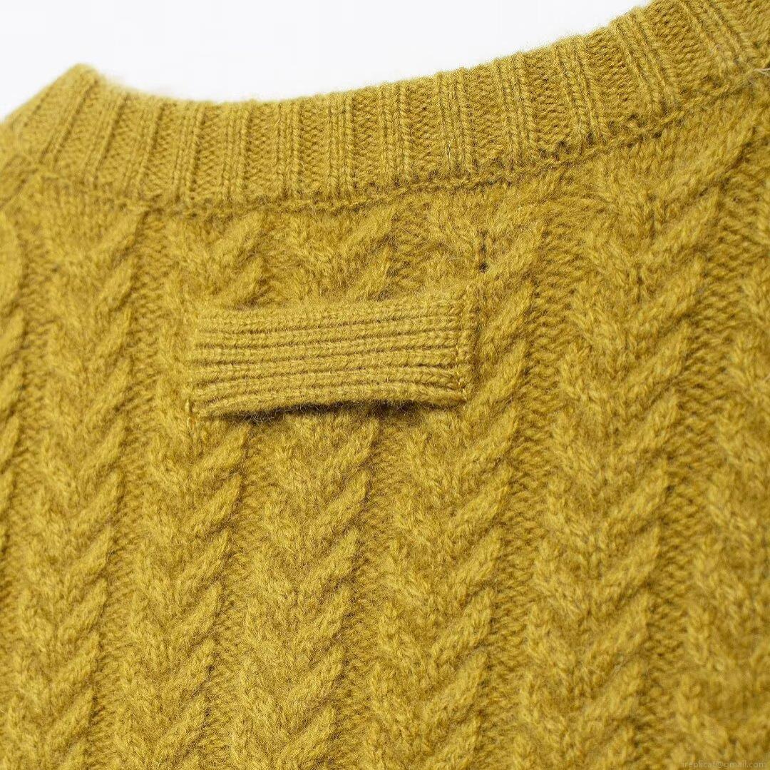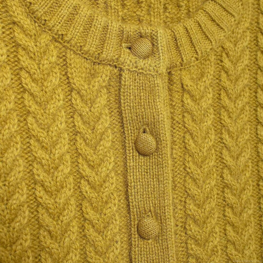 • Women's Retro Mustard Yellow Cable Knit Cardigan Sweater Round Neck Long Sleeve Button Up Top With Patch Pockets Casual Loose Knitwear