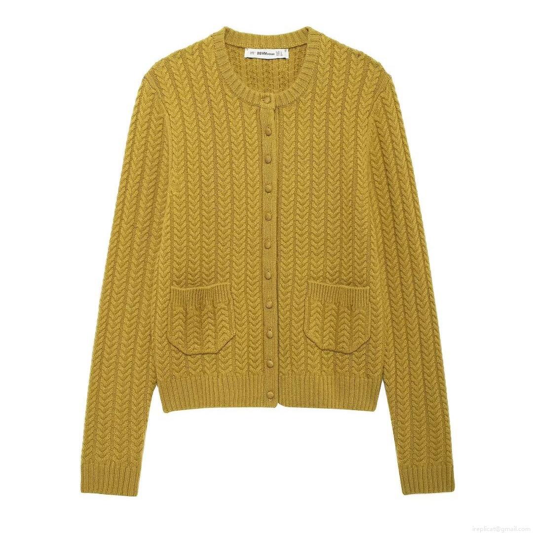 Solid Color, Buttons, Twisted Texture, Cable Knit, Patch Pocket