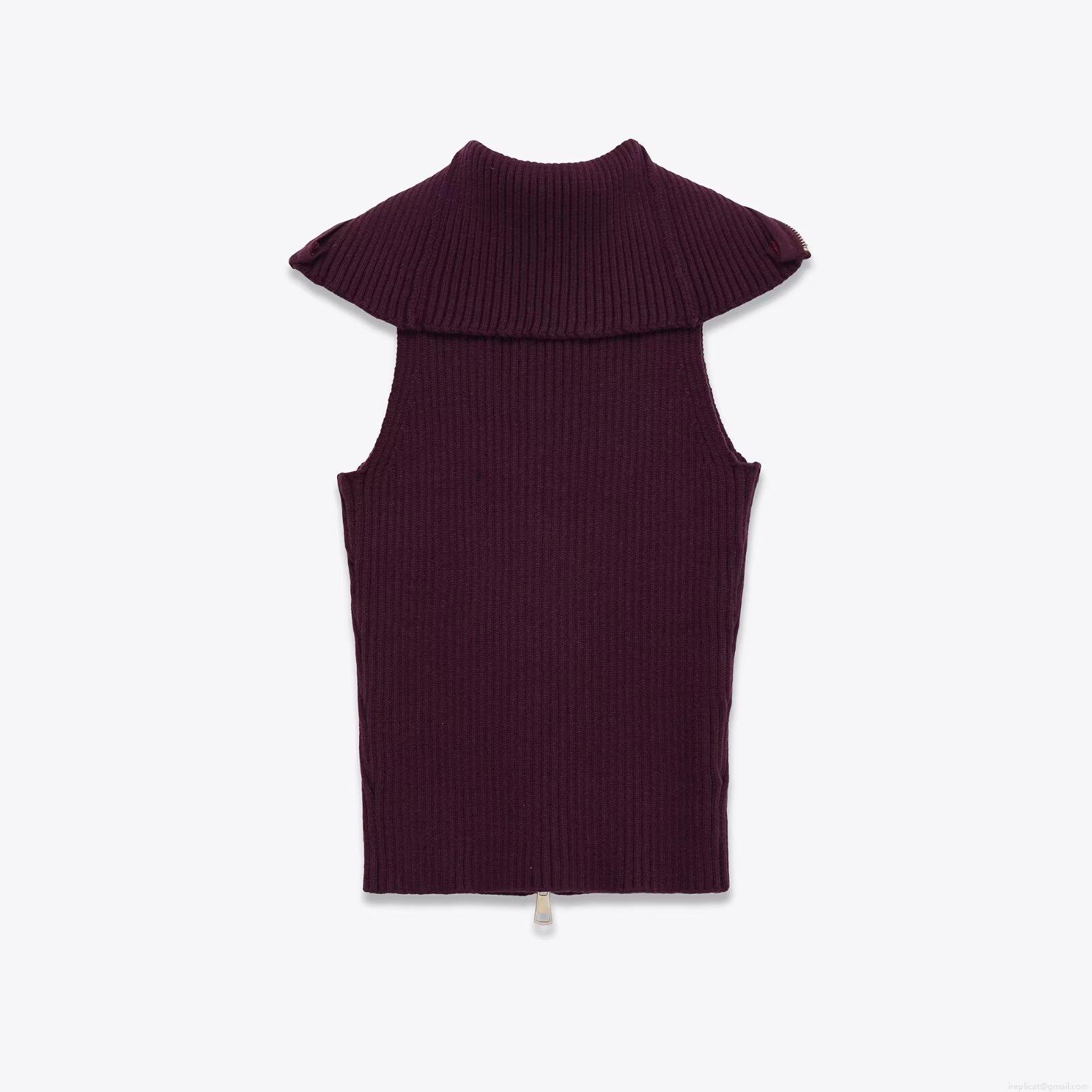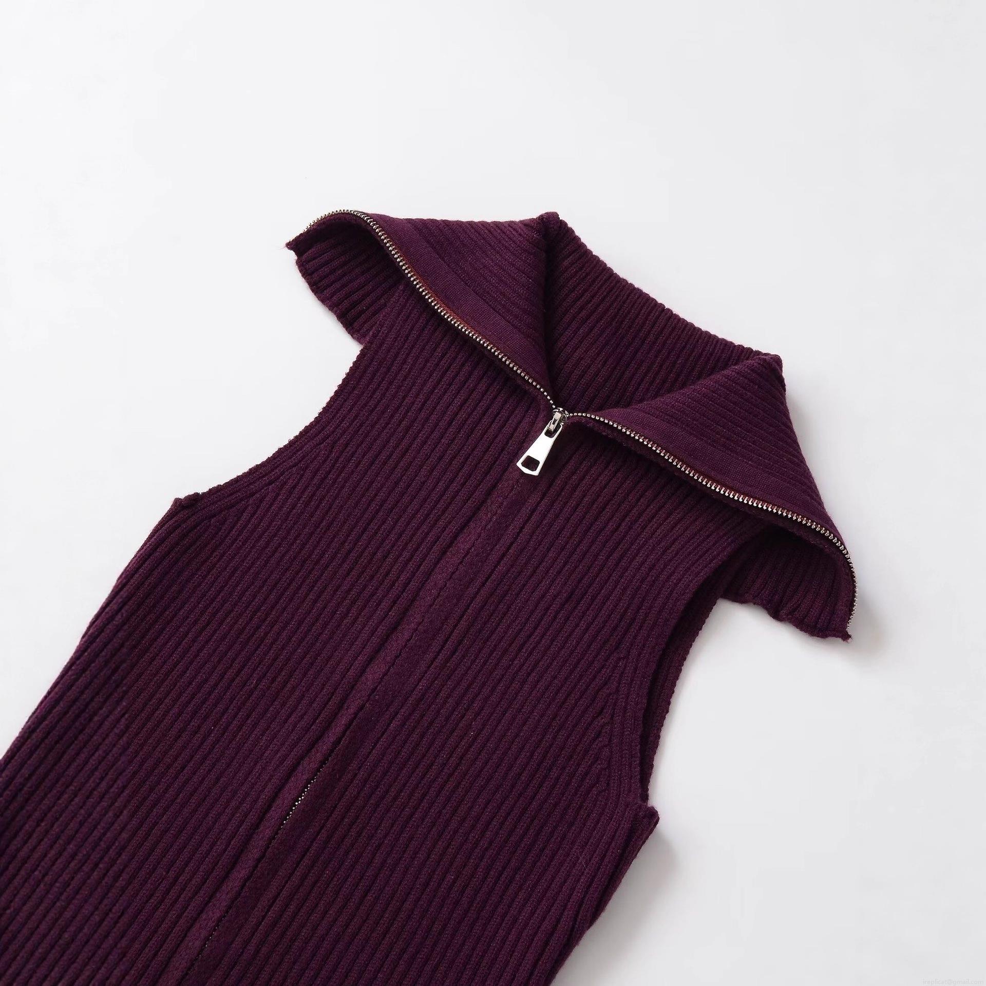 Women's Ribbed Knit Vest Sleeveless Zip Up Lapel Sweater Top Solid Wine Red Slim Fit Streetwear Autumn Pullover Waistcoat For Lady
