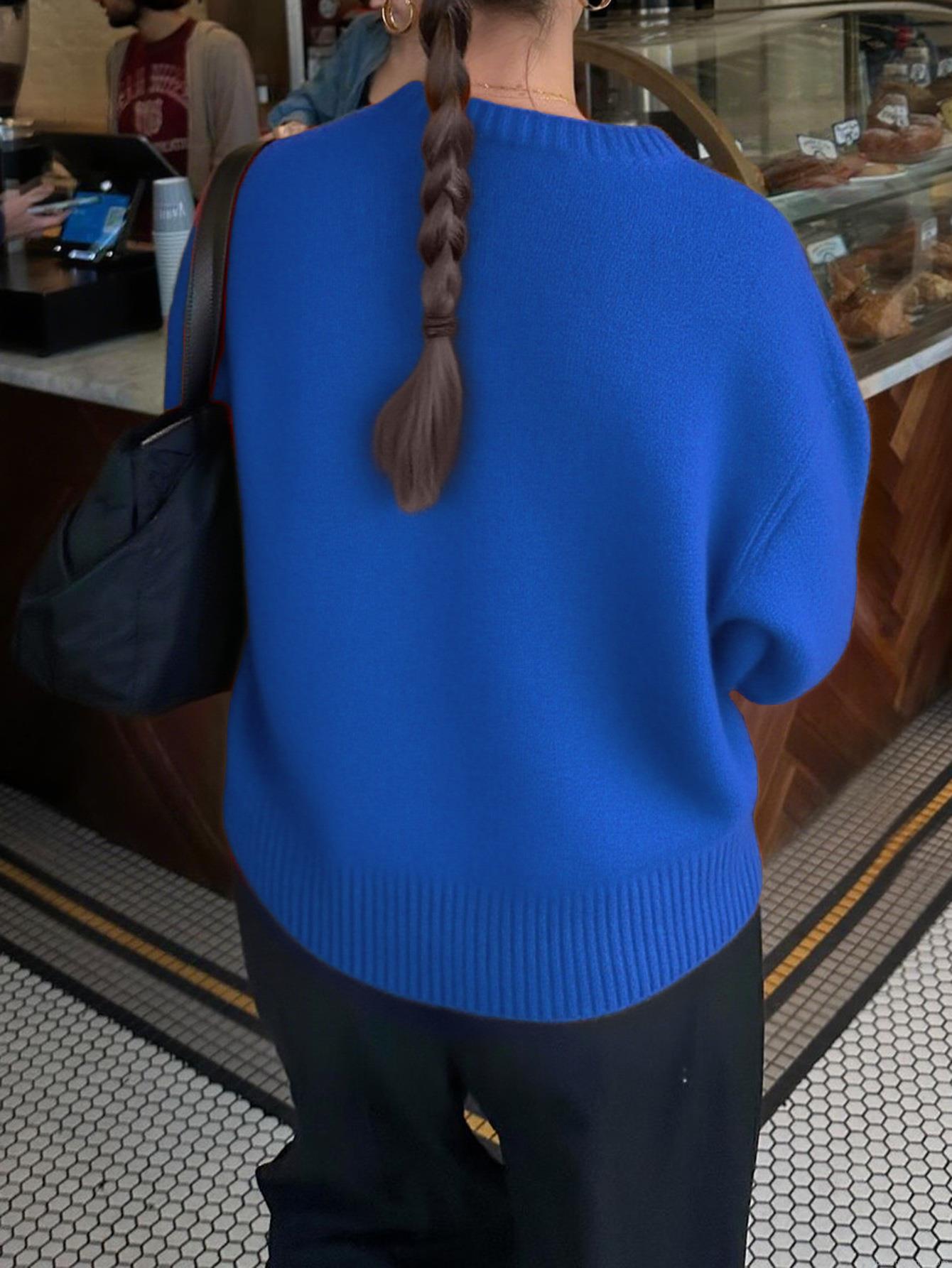 • Women's Round Neck Knitted Sweater 52% Acrylic Blend Solid Color Long Sleeve Loose Fit Pullover For Daily Casual Streetwear Autumn Winter