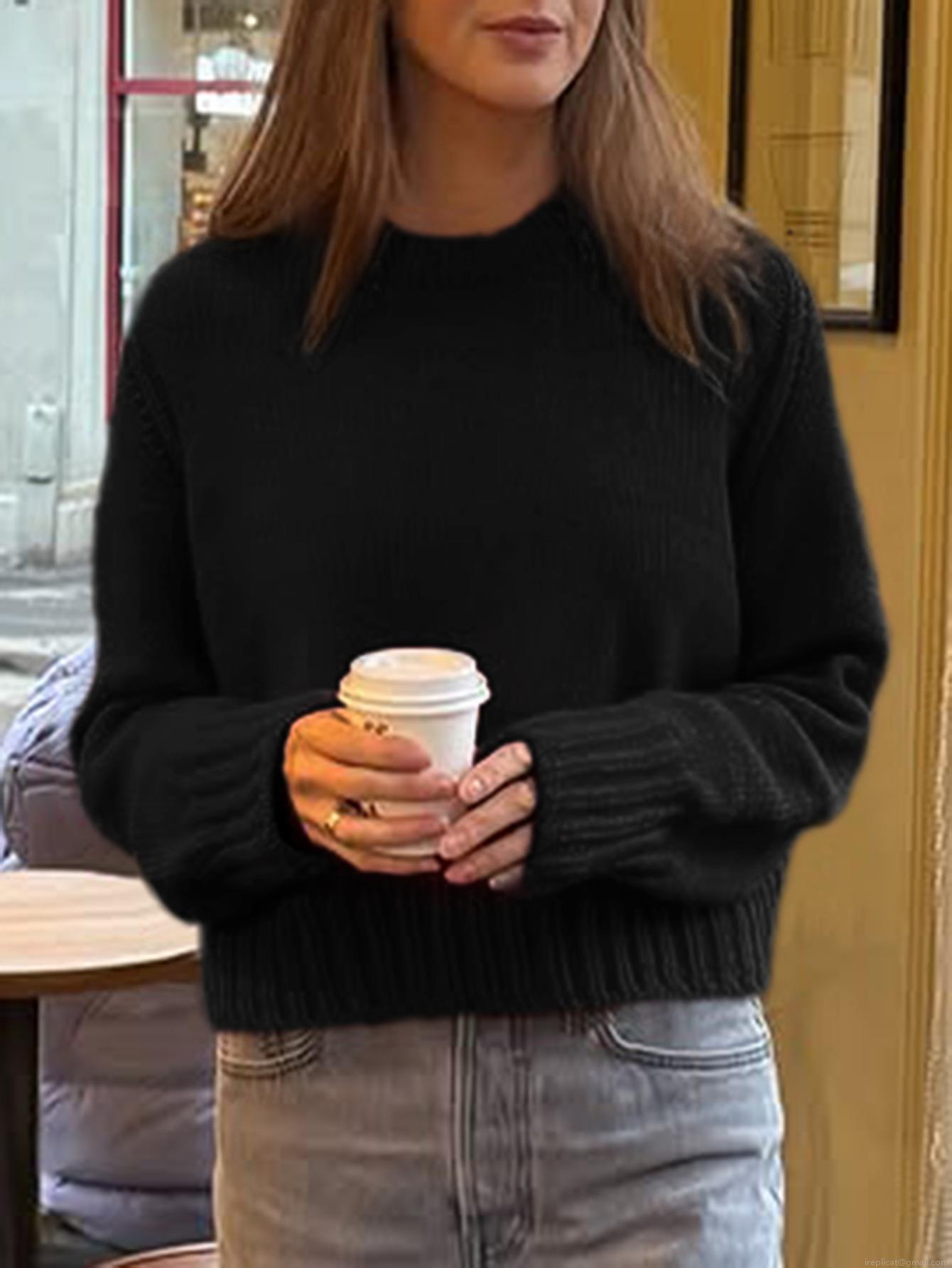 • Women's Round Neck Long Sleeve Knitted Sweater Casual Loose Fit Solid Color Pullover Top Soft Warm Acrylic Knitwear For Autumn Winter
