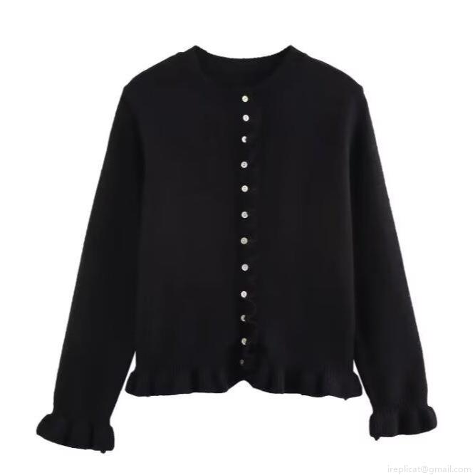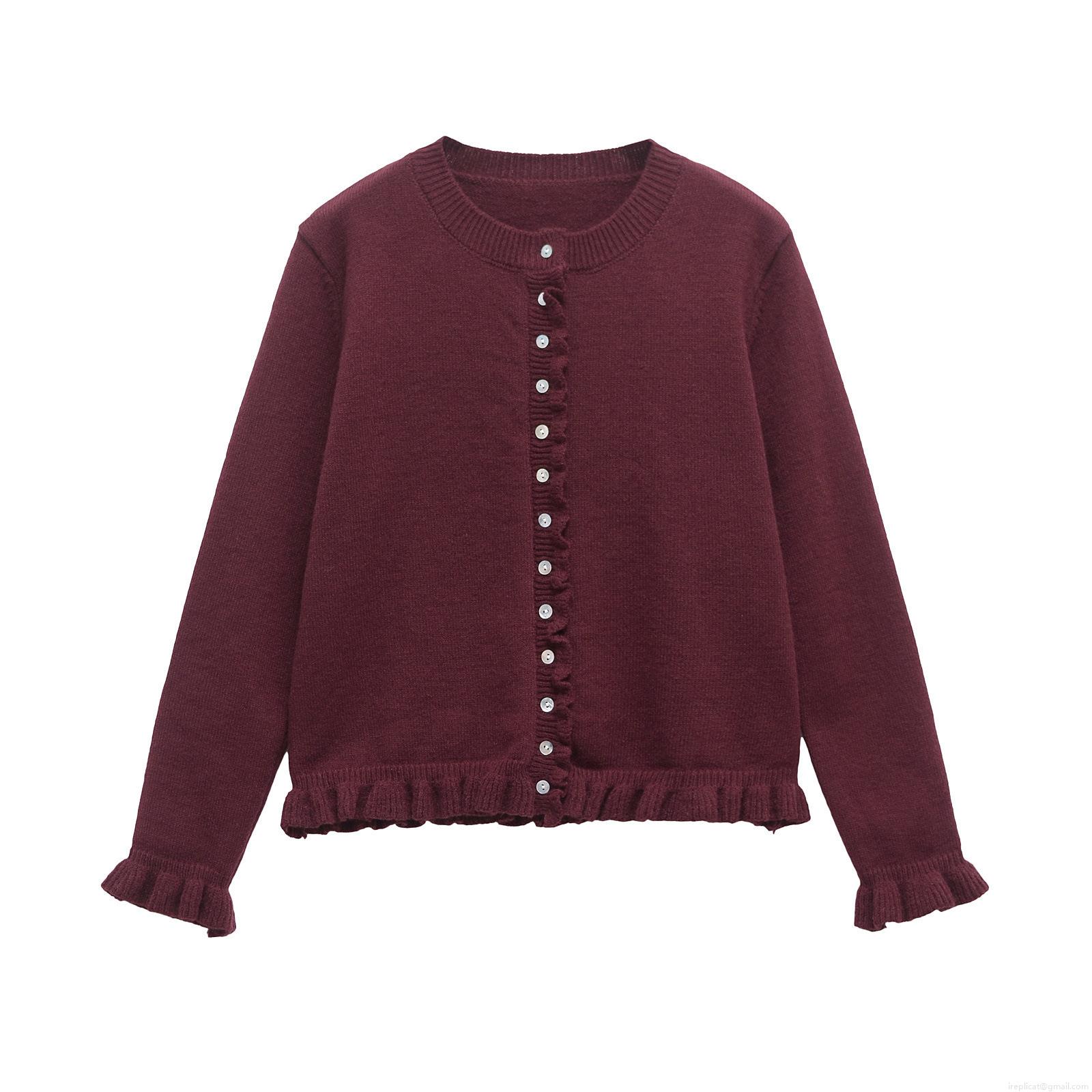 • Women's Ruffle Trim Knit Cardigan Sweet Round Neck Long Sleeve Button Down Sweater Casual Solid Color Ruffled Edges Knitwear Top For Women Ladies