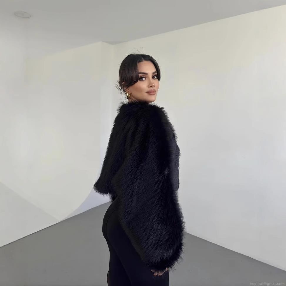 Solid Color, Plush, Fur, Short, Navel Exposed