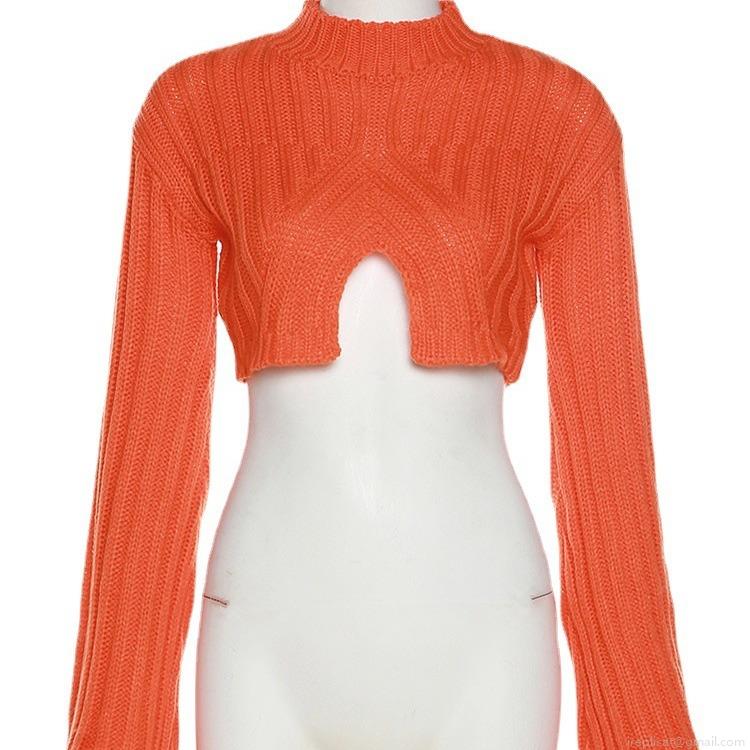 Women's Sexy Hollow Out Cropped Sweater Flare Sleeve Slim Fit Round Neck Acrylic Spandex Knit Top For Street Dating Party Clubwear Fashion Long Sleeve Pullover