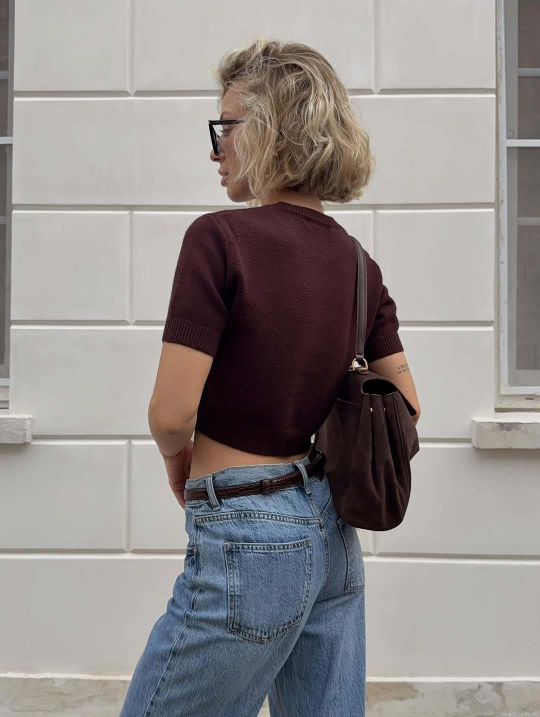 • Women's Sexy Knitted Crop Top Short Sleeve Round Neck Pullover Retro Graphic Letter Embroidery Slim Fit Y2K Streetwear Fashion Knitwear Tops