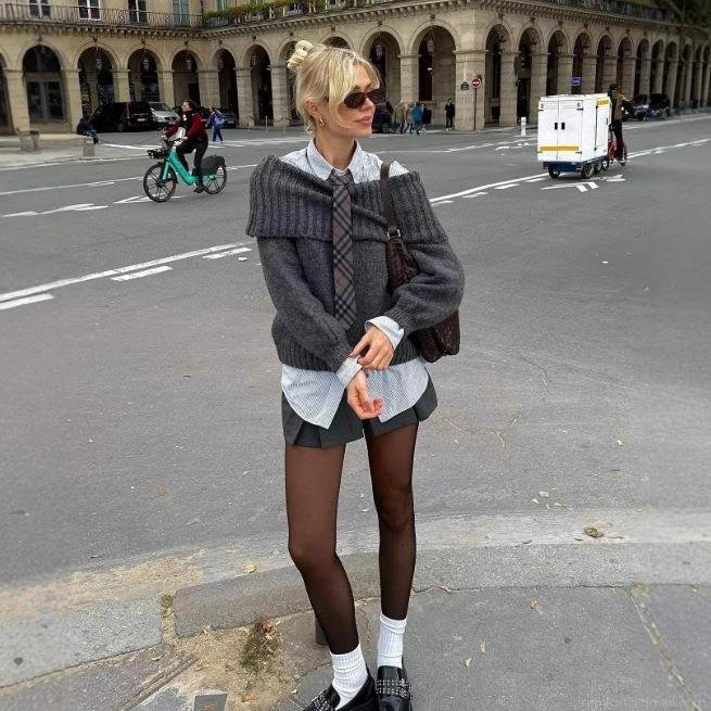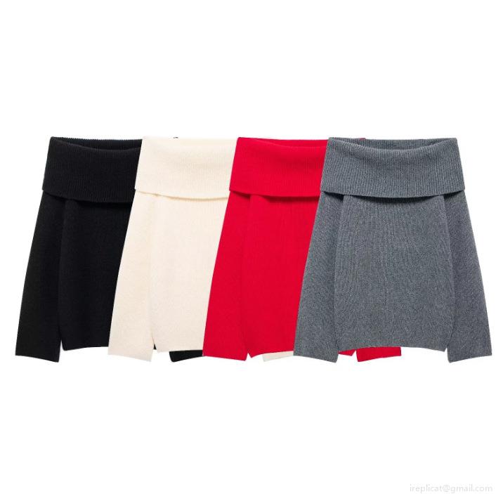 • Women's Sexy Off Shoulder Long Sleeve Knitted Sweater Casual Solid Color Foldover Collar Loose Fit Pullover Knitwear Tops For Women