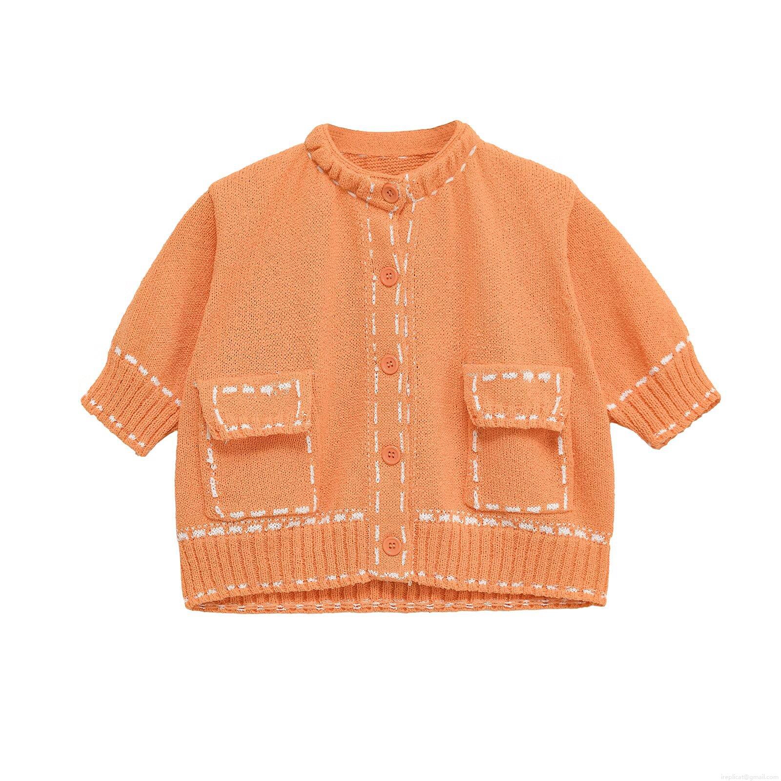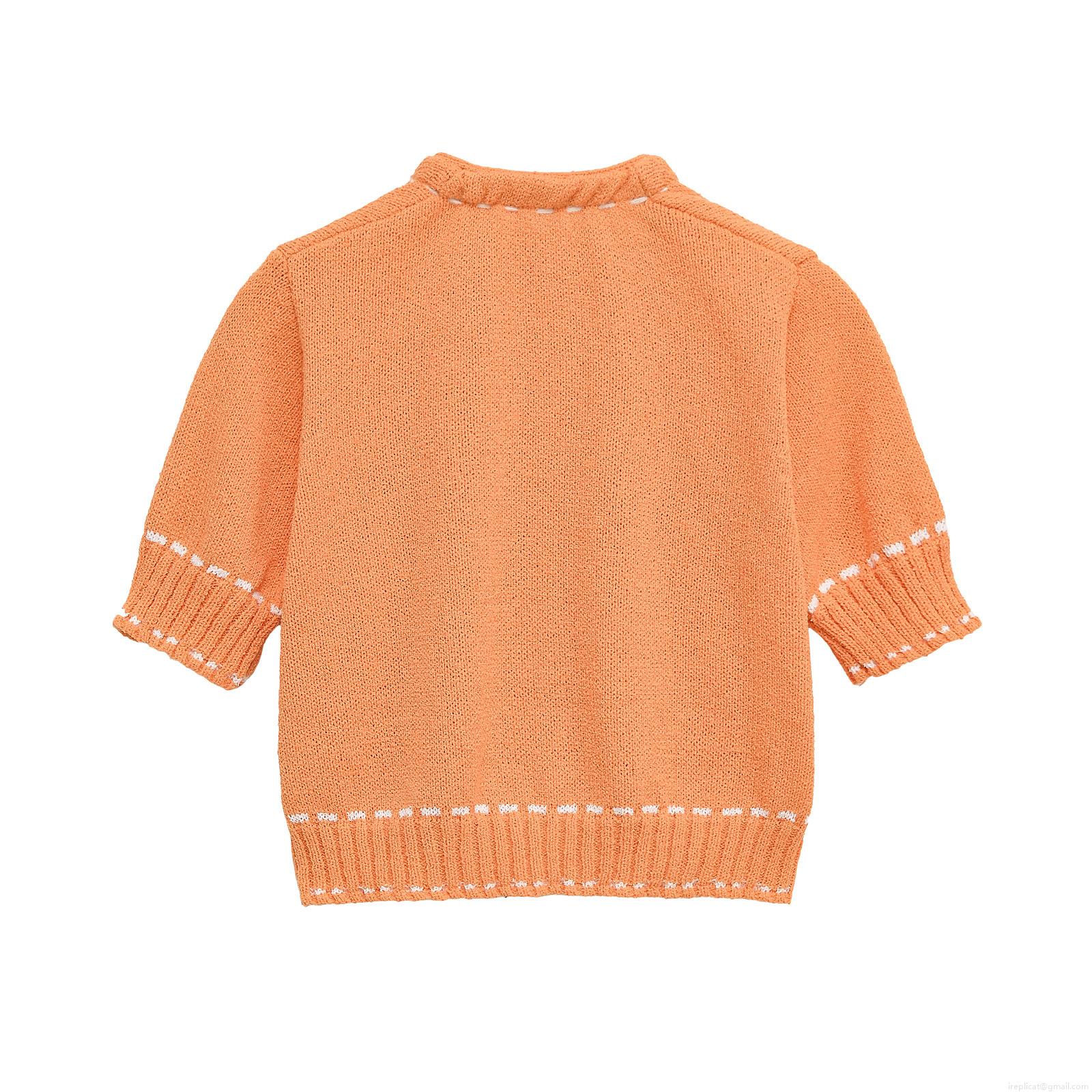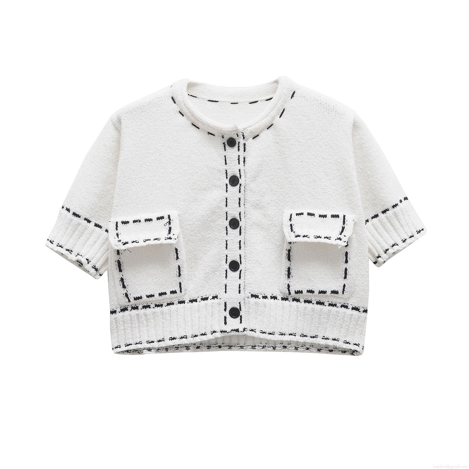 Women's Short Sleeve Knit Cardigan Jacket Contrast Stitching Round Neck Button Down Casual Streetwear Chic Outerwear Acetate Knit Top For Women