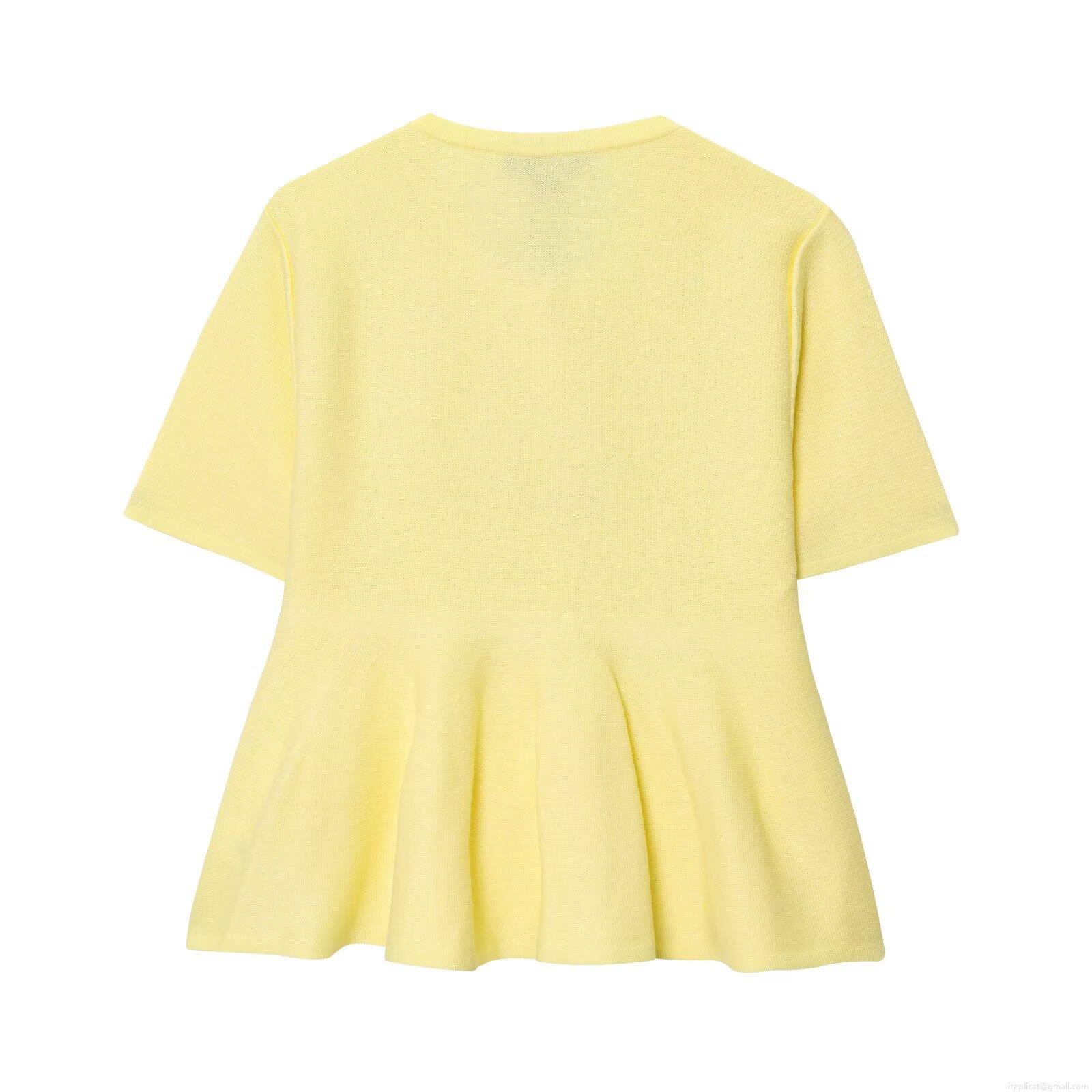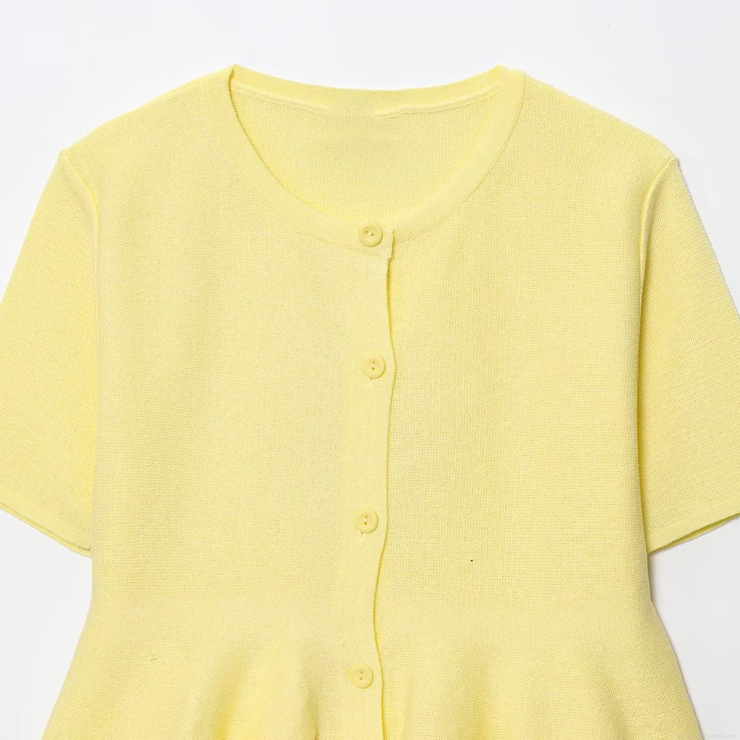 Women's Short Sleeve Knit Cardigan Top Peplum Hem Round Neck Button Down Solid Color Sweet Style Knitted Summer Fashion Outerwear 100% Polyester