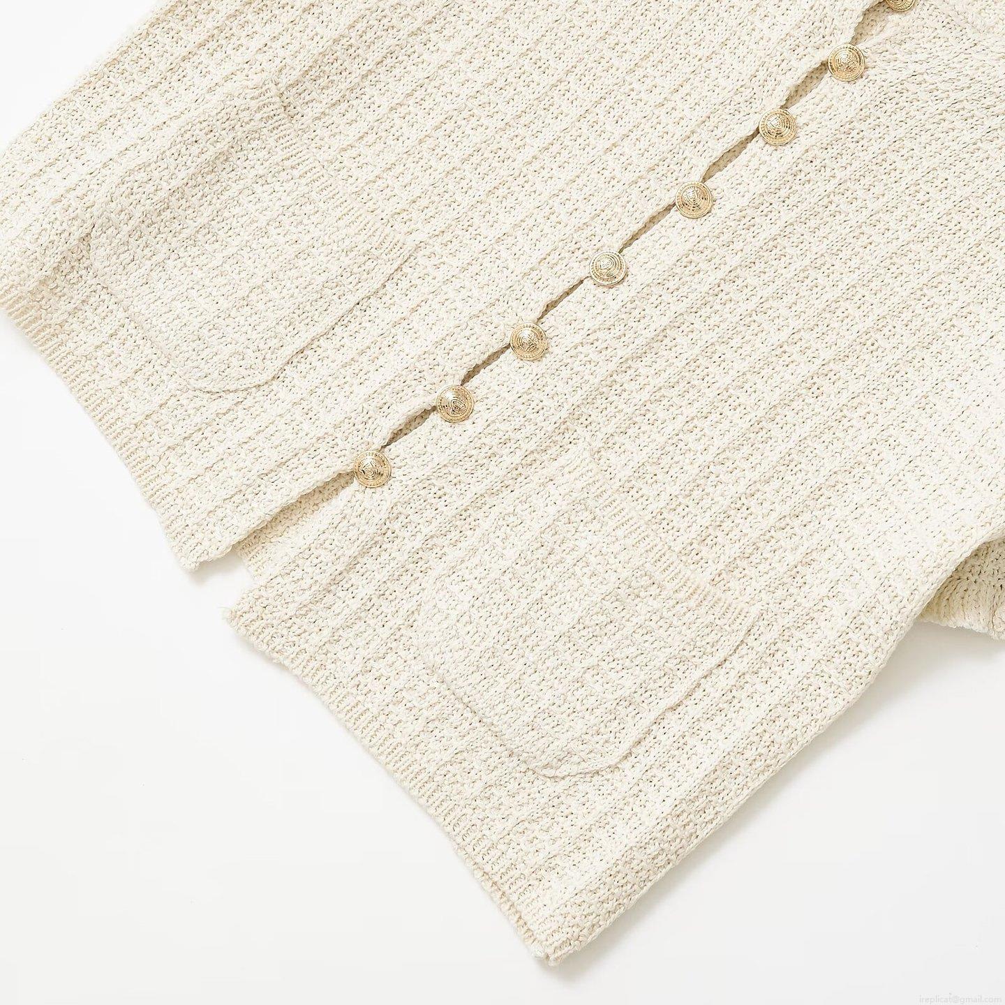 • Women's Short Sleeve Knit Cardigan Vintage Tweed Style Lion Head Gold Button Ruffle Trim Top Elegant Casual Crew Neck Short Sweater For Women
