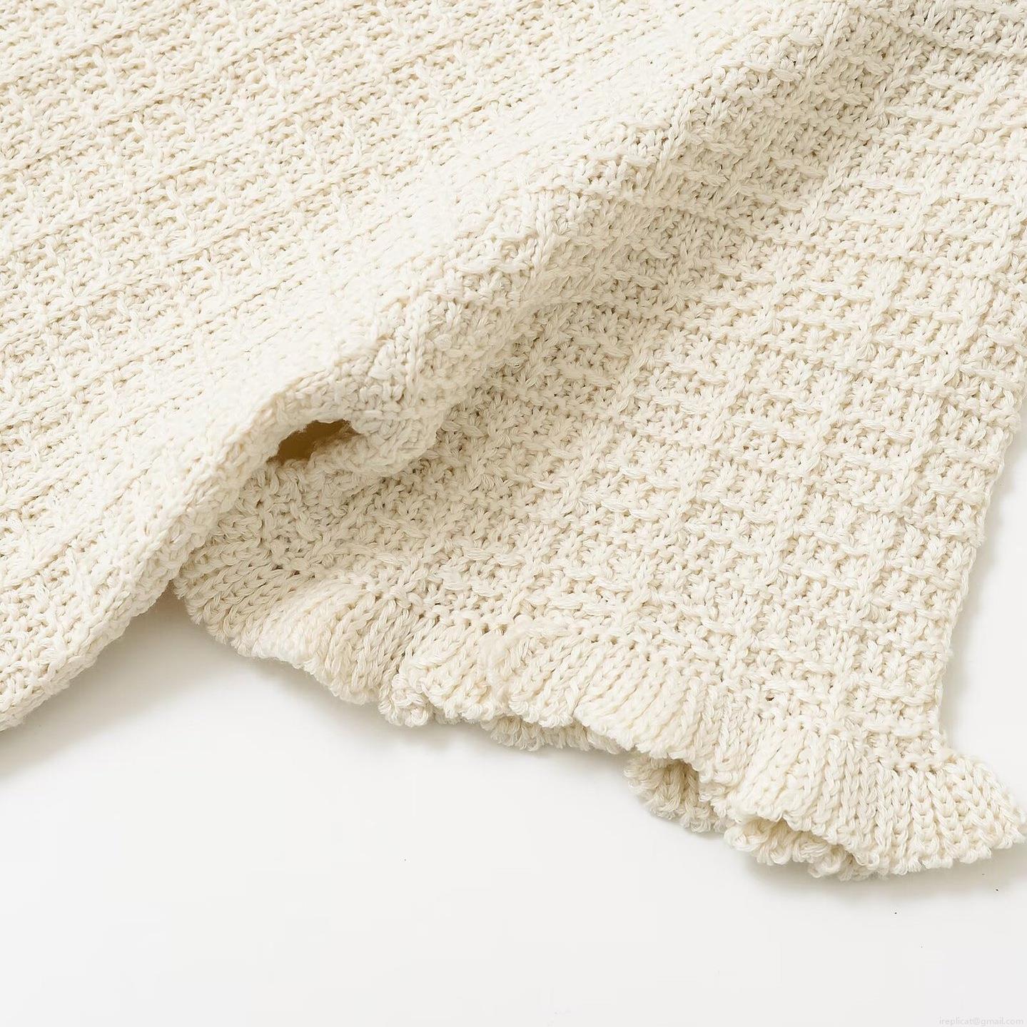 Solid Color, Knitted Texture, Double Pockets, Ruffle Decoration, Gold Embossed Buckle