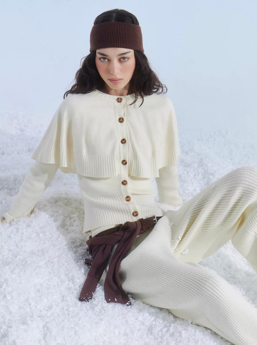 Solid Color, Ruffles, Button Decoration, Cloak-style Layering