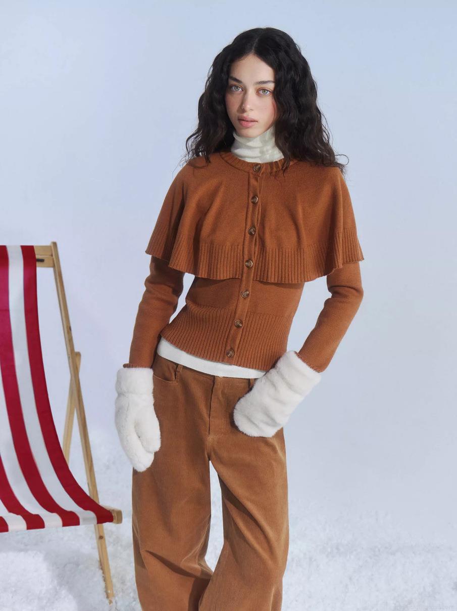• Women's Small Crowd Lazy Style Knitted Sweater Core Spun Yarn Capelet Design Button Soft Warm Loose Fit Pullover For Autumn Winter Casual Daily Wear