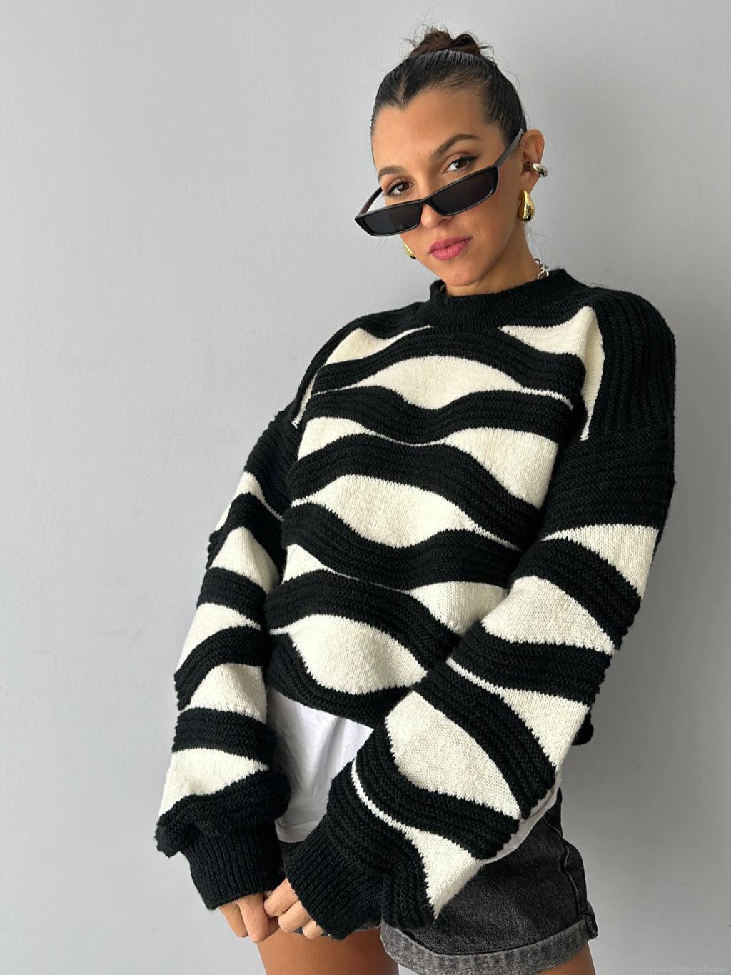 Color Blocking, Wavy Stripes, Lazy Style, Dropped Shoulders