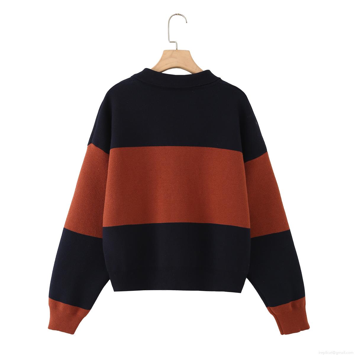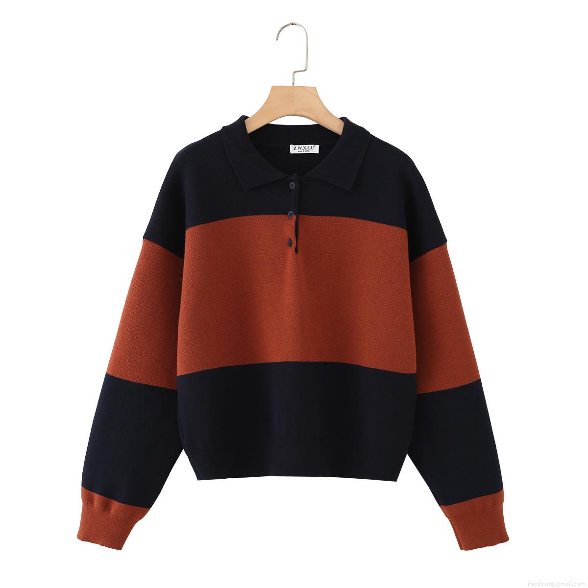 • Women's Striped Color Block Knitted Polo Sweater Casual Long Sleeve Core Spun Yarn Knit Top Fashionable Chic Daily Wear Pullover