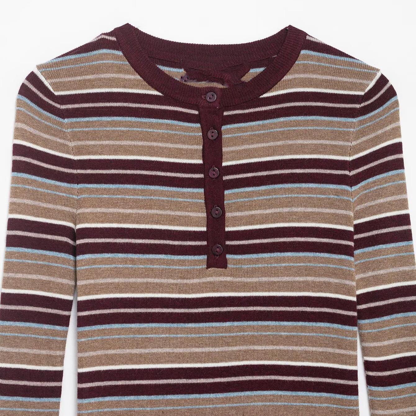 • Women's Striped Knit Sweater Long Sleeve Slim Fit Henley Neck Button Down Ribbed Pullover Top Casual Daily Winter Multicolor Knitted Sweater for Ladies