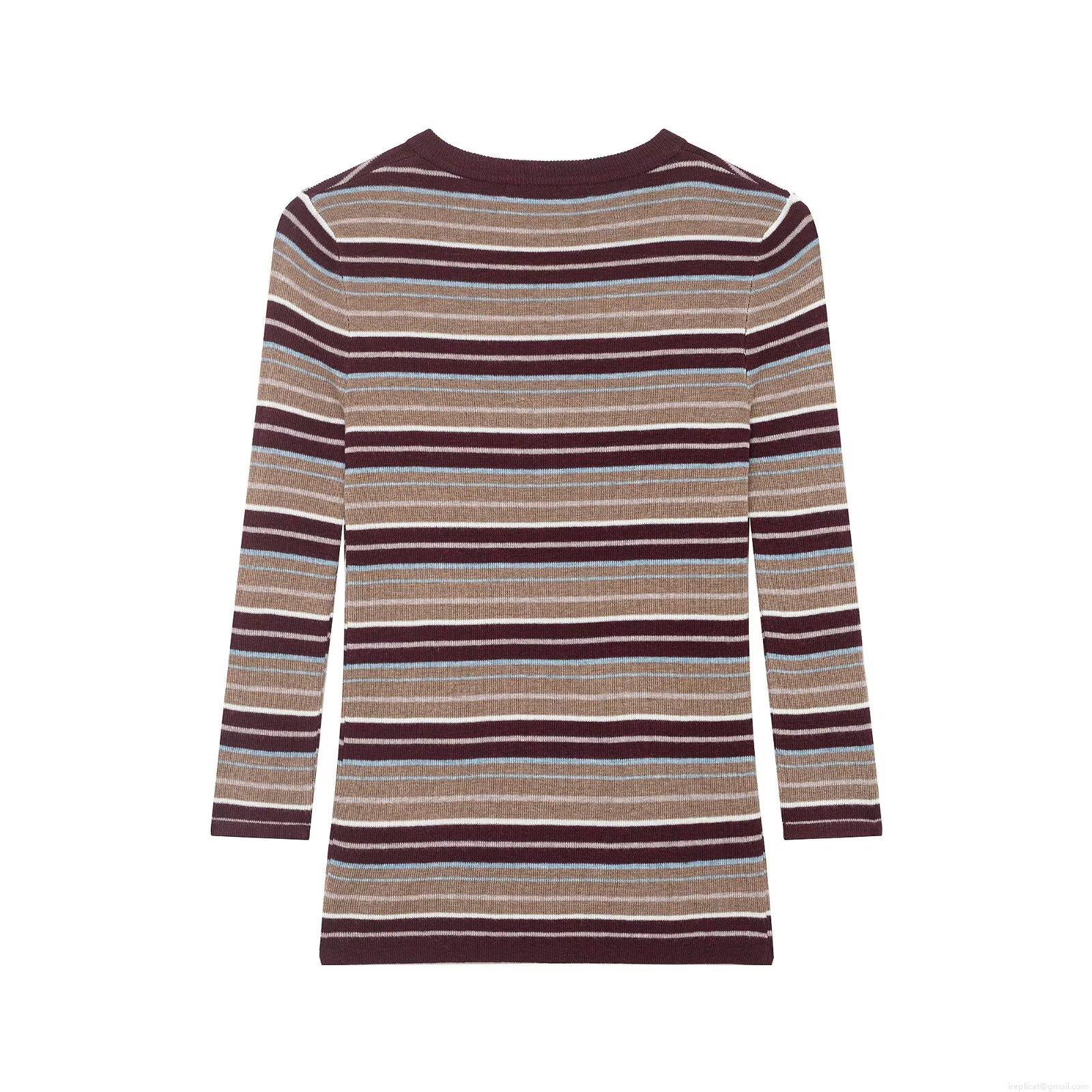 Women's Striped Knit Sweater Long Sleeve Slim Fit Henley Neck Button Down Ribbed Pullover Top Casual Daily Winter Multicolor Knitted Sweater for Ladies