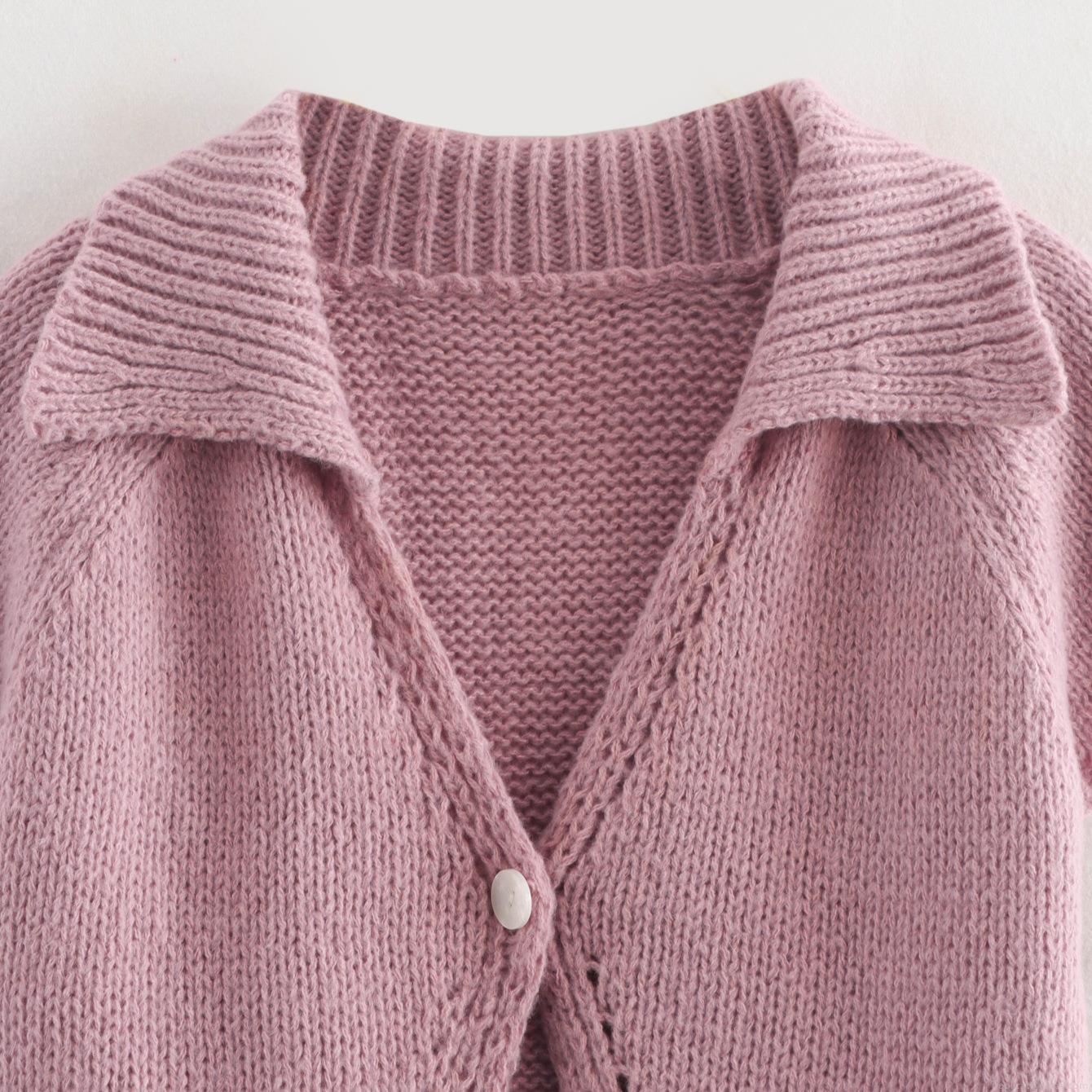 • Women's Sweet Cute Knitted Short Sleeve Cardigan V-neck Lapel Single Button Solid Color Polyester Knit Sweater Top for Early Autumn Casual Daily Wearing