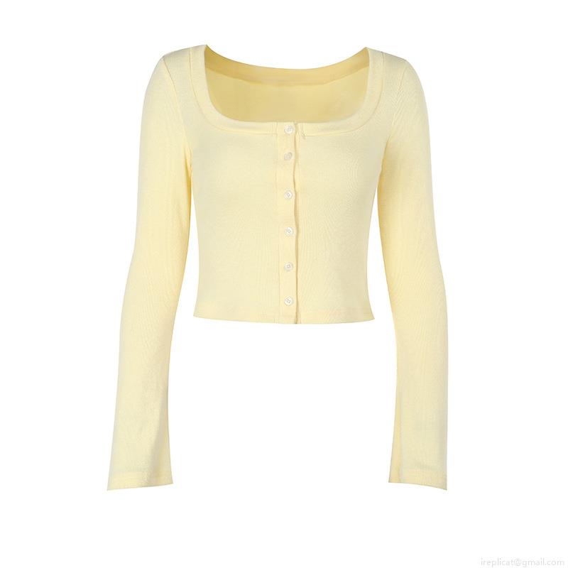 • Women's Sweet Square Neck Knitted Cardigan Long Sleeve Slim Fit Short Crop Top Button Ribbed Knit Shirt for Spring Autumn Daily