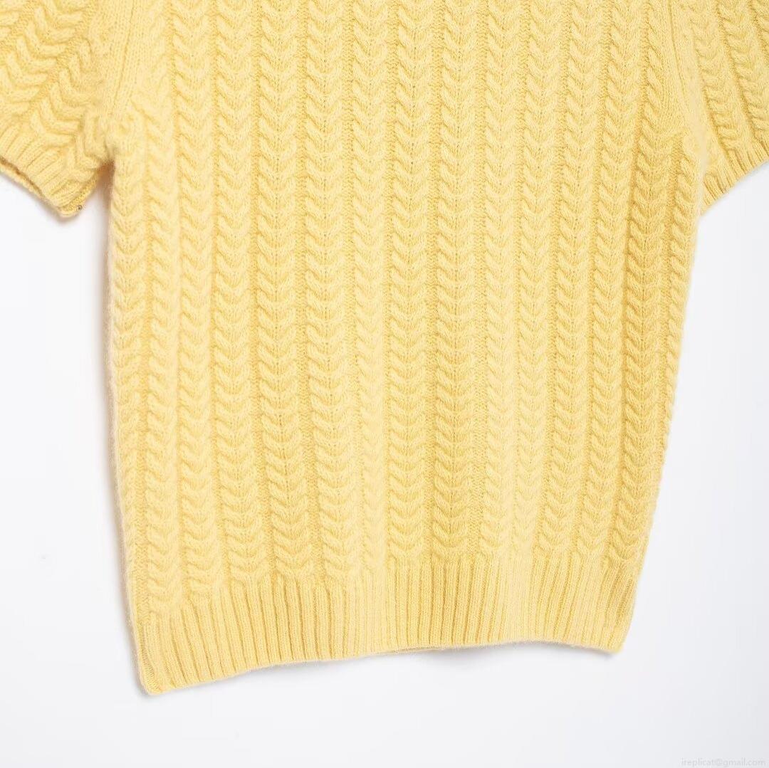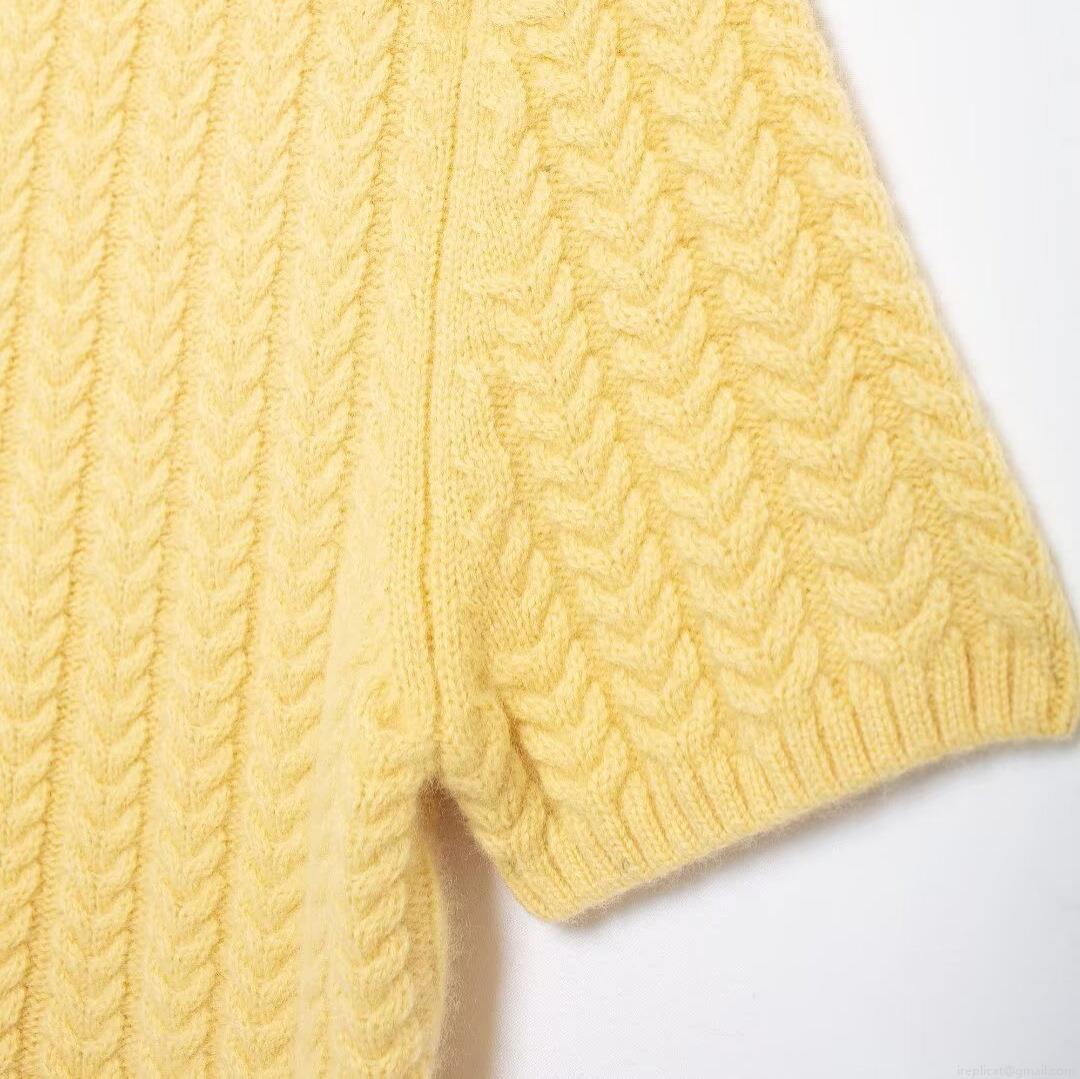 • Women's Sweet Yellow Cable Knit Short Sleeve Sweater Round Neck Casual Polyester Pullover Knitted Top For Daily Wear