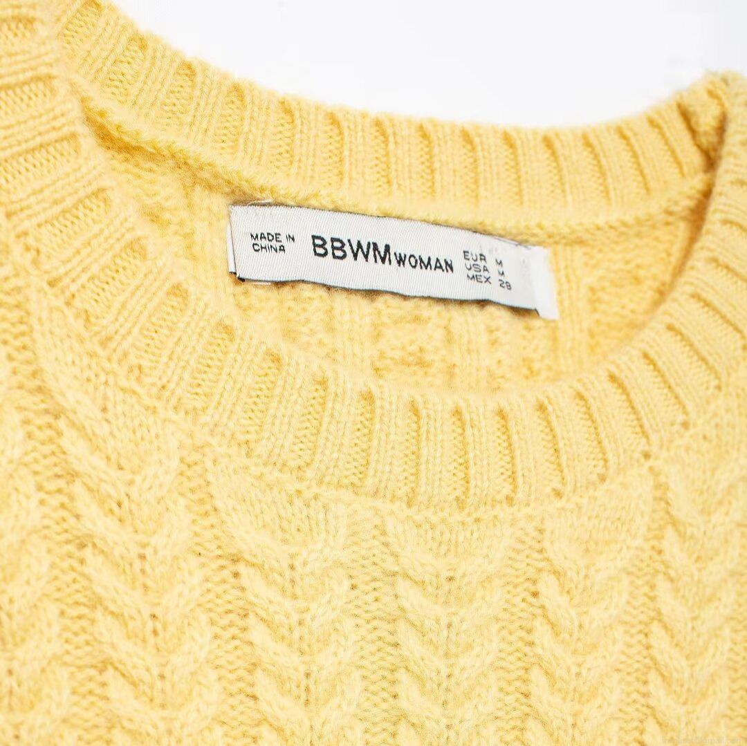 Women's Sweet Yellow Cable Knit Short Sleeve Sweater Round Neck Casual Polyester Pullover Knitted Top For Daily Wear