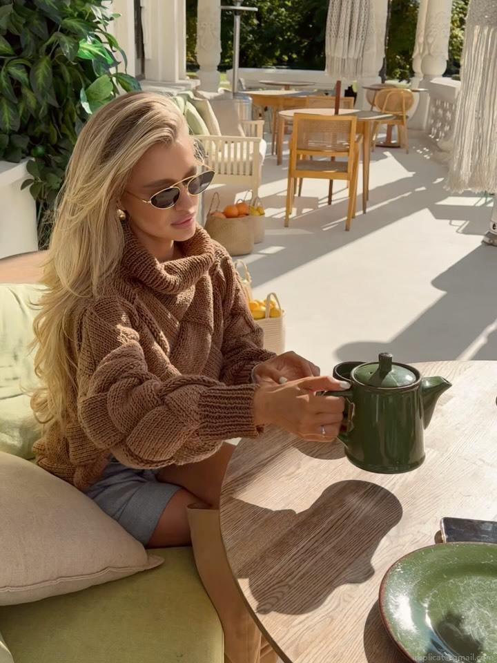• Women's Turtleneck Cable Knit Sweater Brown Oversized Chunky Knit Pullover Tops Autumn Winter Casual Loose Long Sleeve Knitwear