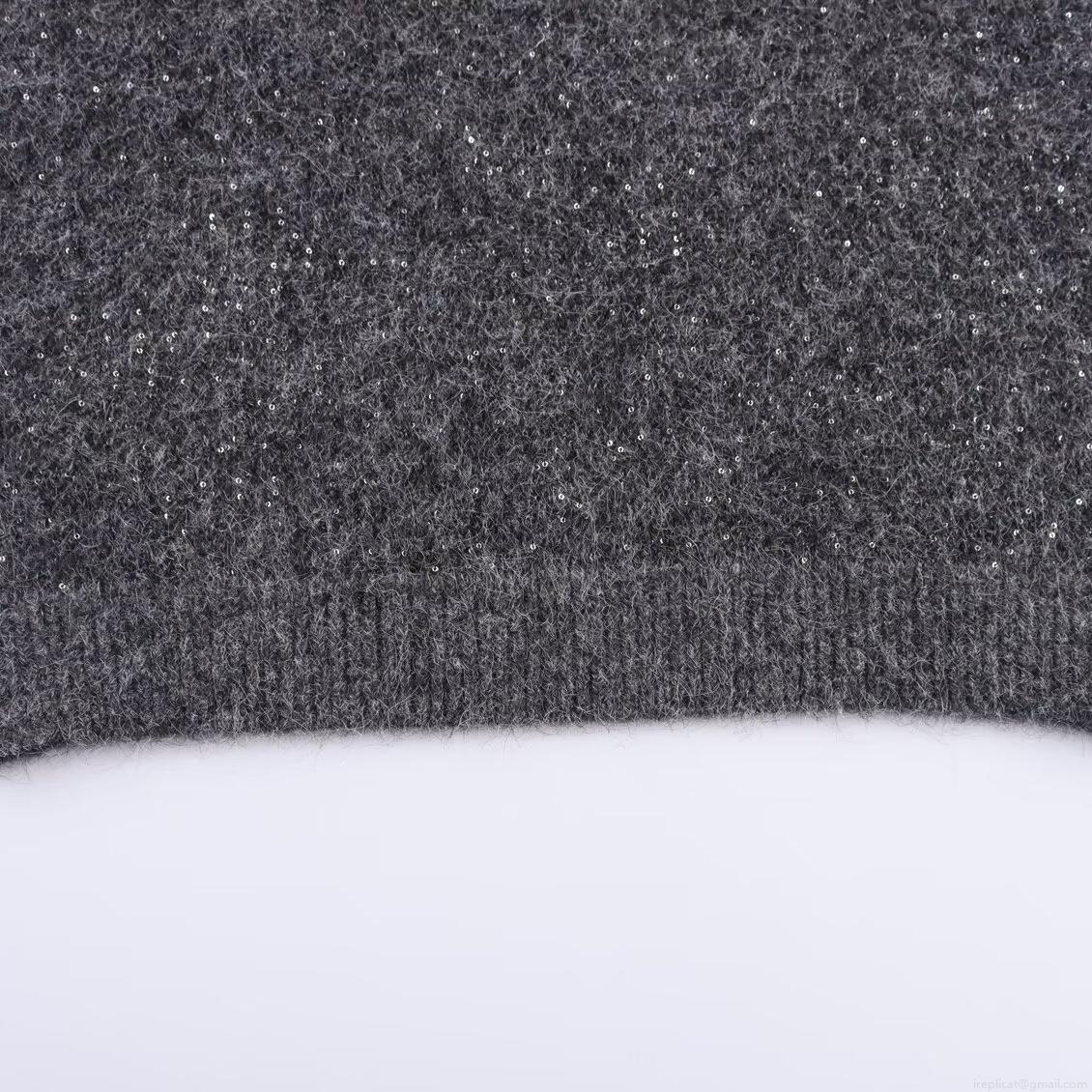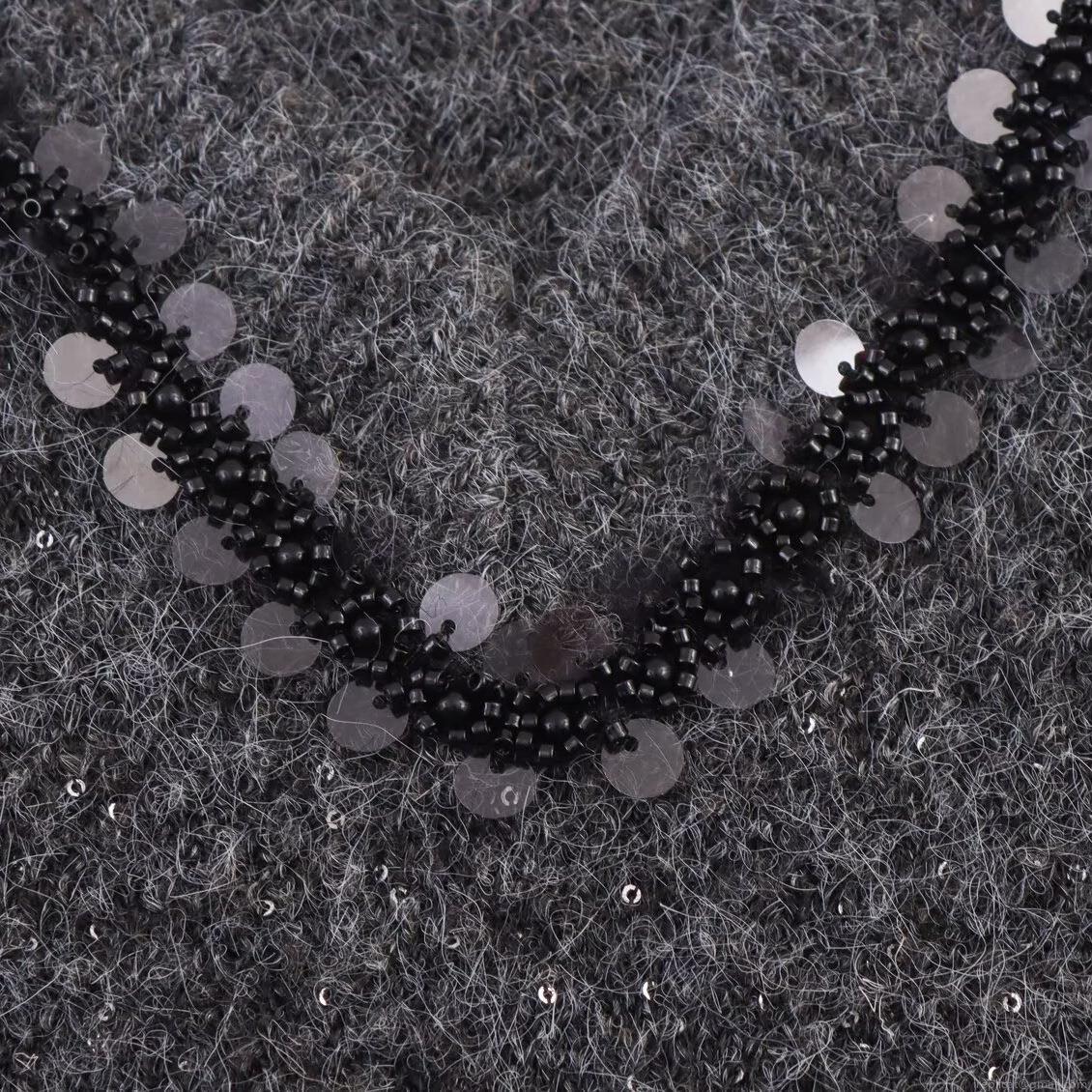Solid Color, Sequin, V-neck, Knitted Texture