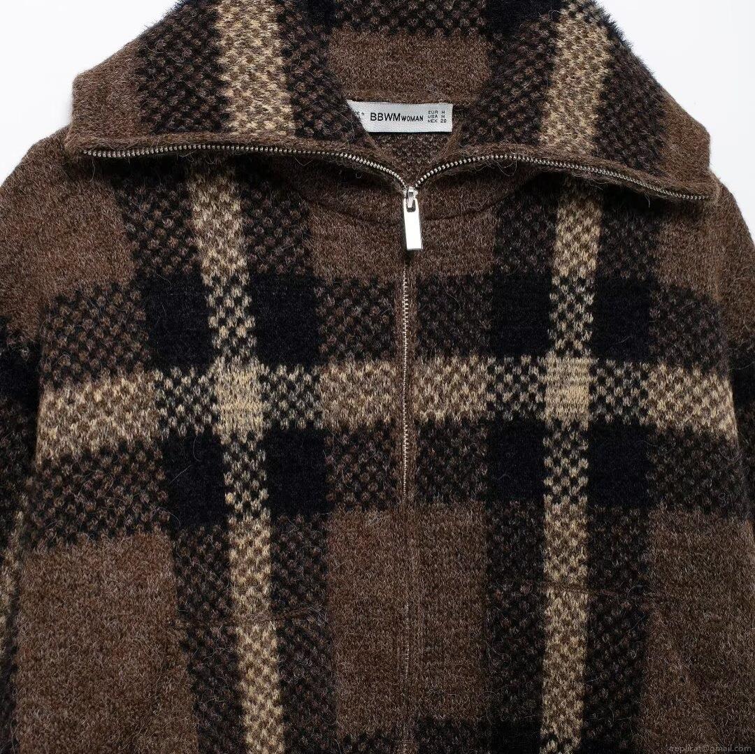 • Women's Vintage British Style Plaid Knitted Sweater Cardigan Zipper Jacket Geometric Print Turn-down Collar Loose Casual Autumn Winter Warm Outwear Tops