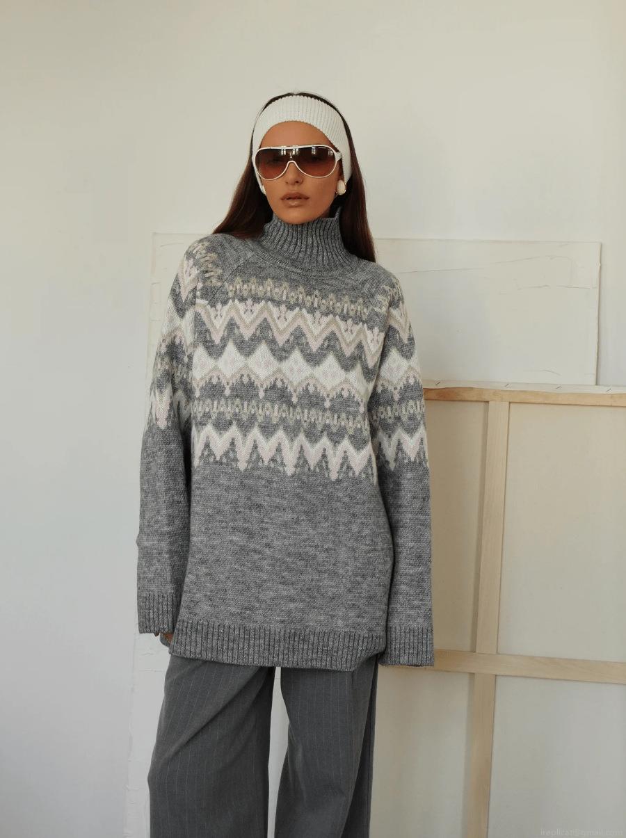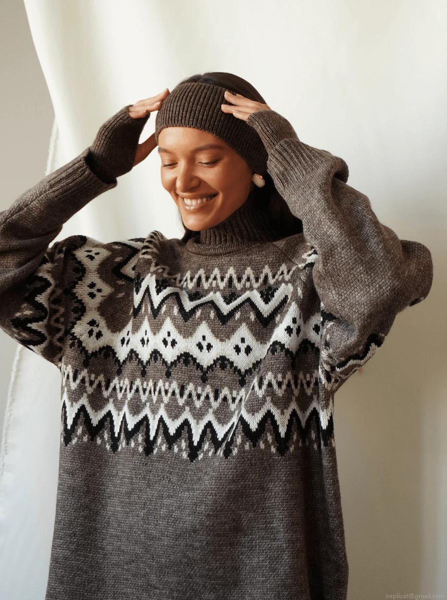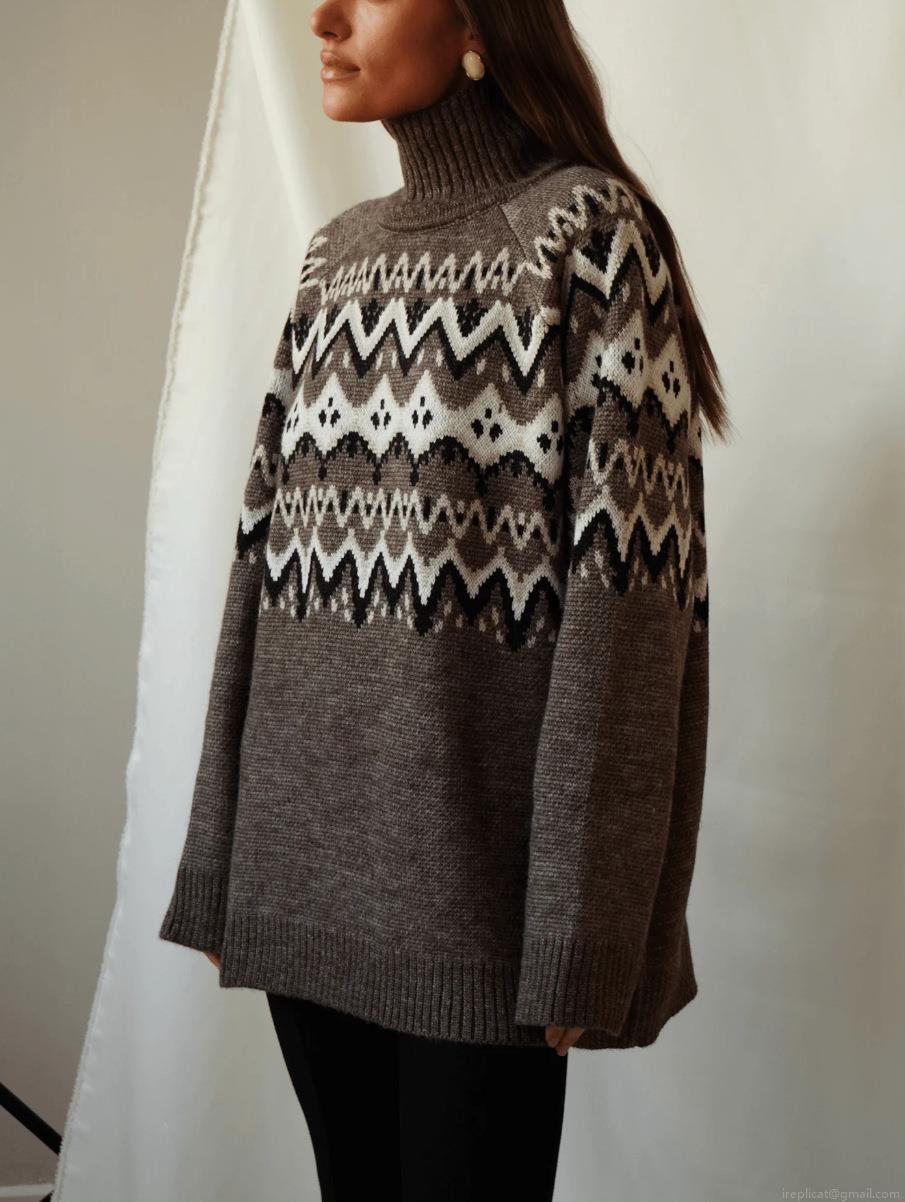• Women's Vintage Fair Isle High Neck Knit Sweater Loose Fit Cotton Polyester Blend Geometric Pattern Warm Pullover Top For Winter Autumn Casual Wear
