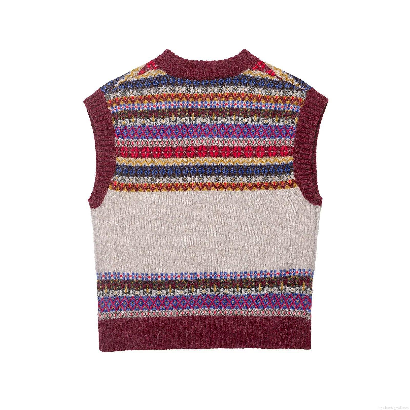 • Women's Vintage Fair Isle Knit Sweater Vest Elegant V-Neck Sleeveless Horse Pattern Pullover Top 100% Polyester Knitted Waistcoat For Spring Autumn Daily Casual