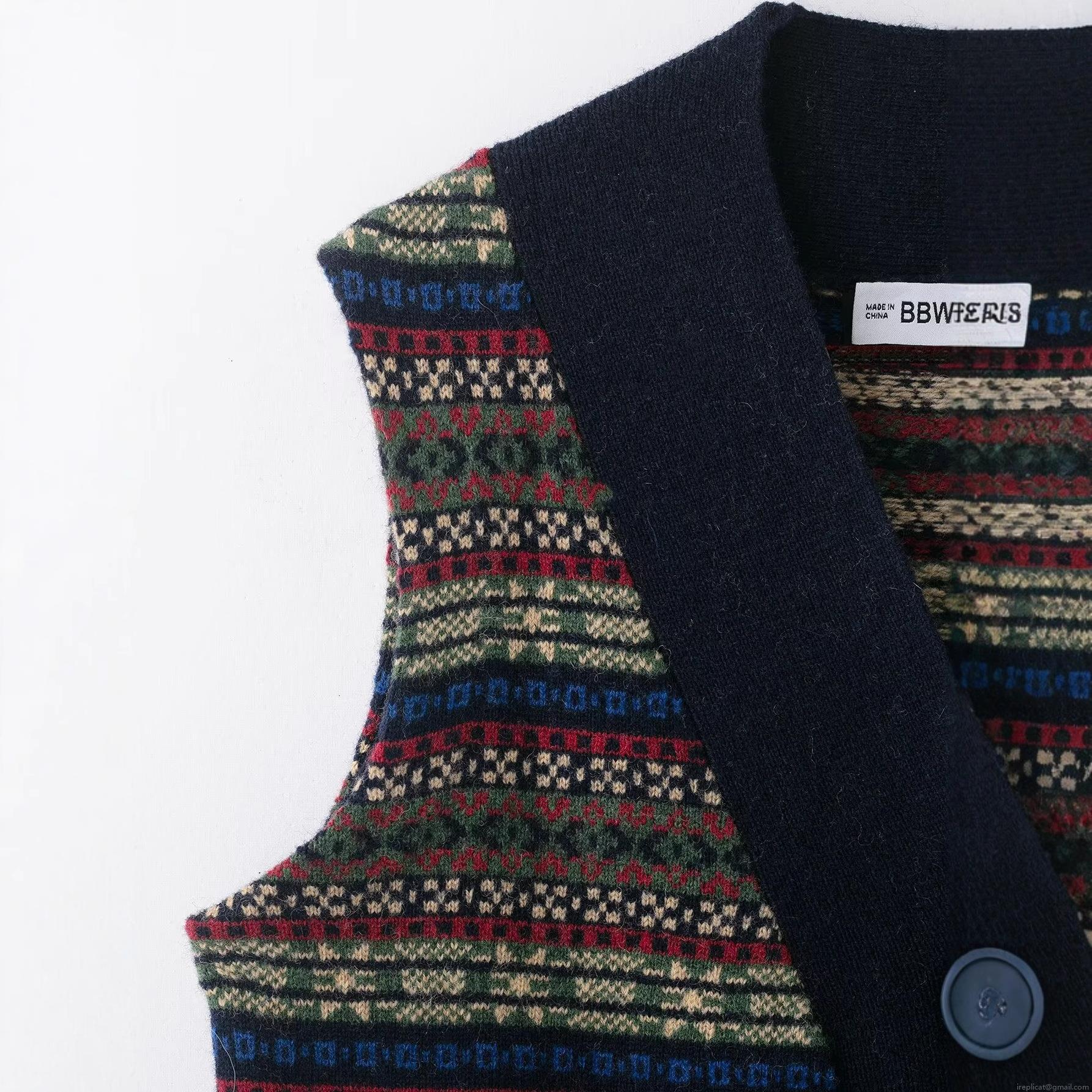 • Women's Vintage Fair Isle Knitted Vest Retro V-Neck Button Down Sleeveless Cardigan Sweater Nordic Style Geometric Pattern Casual Waistcoat For Ladies