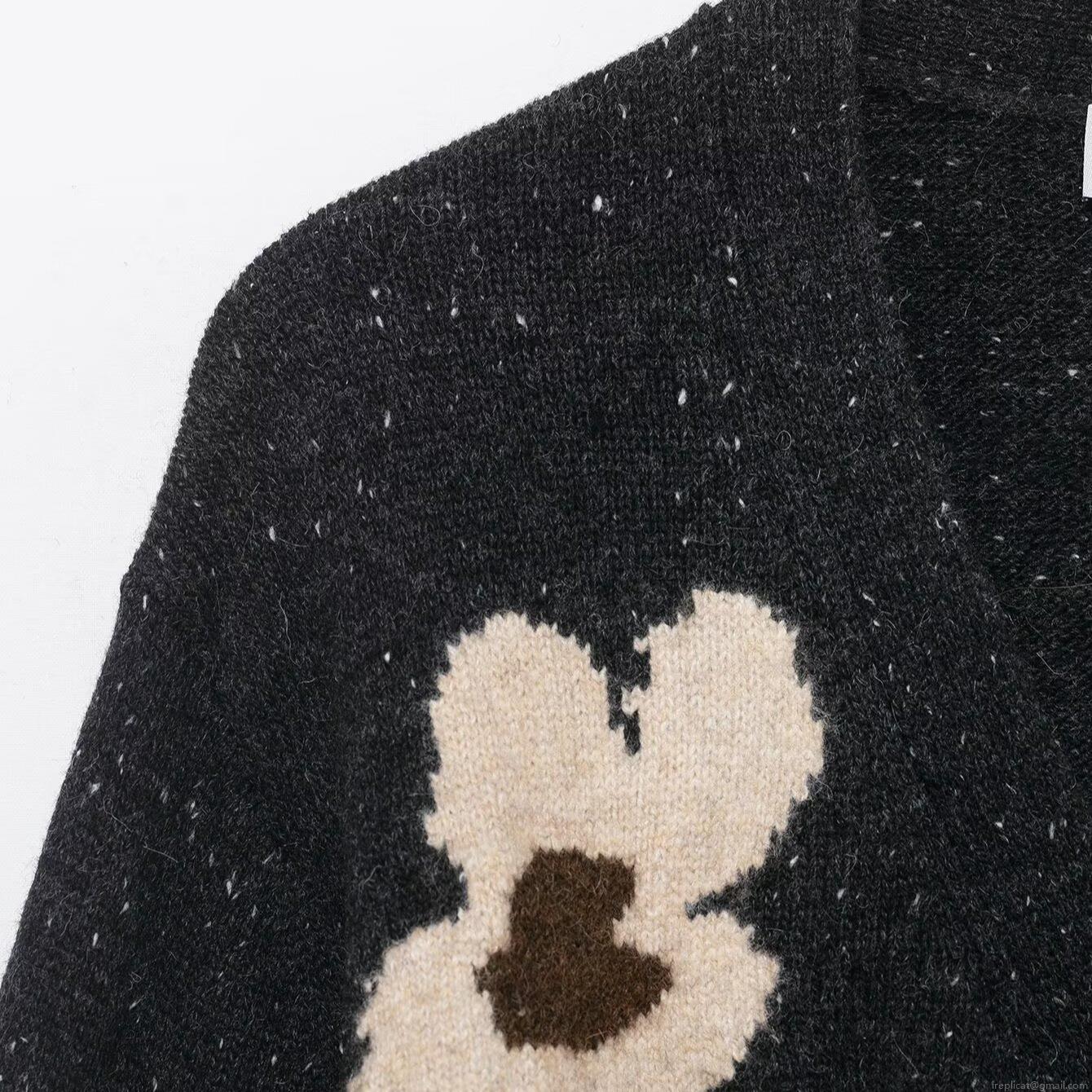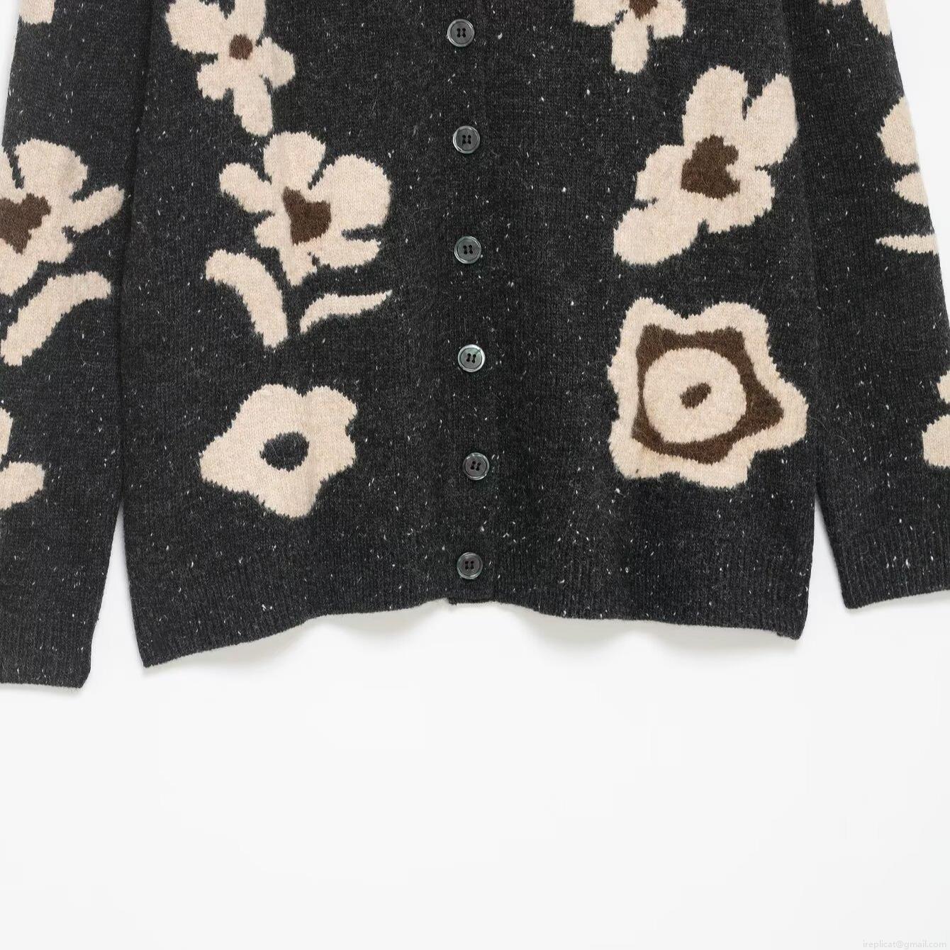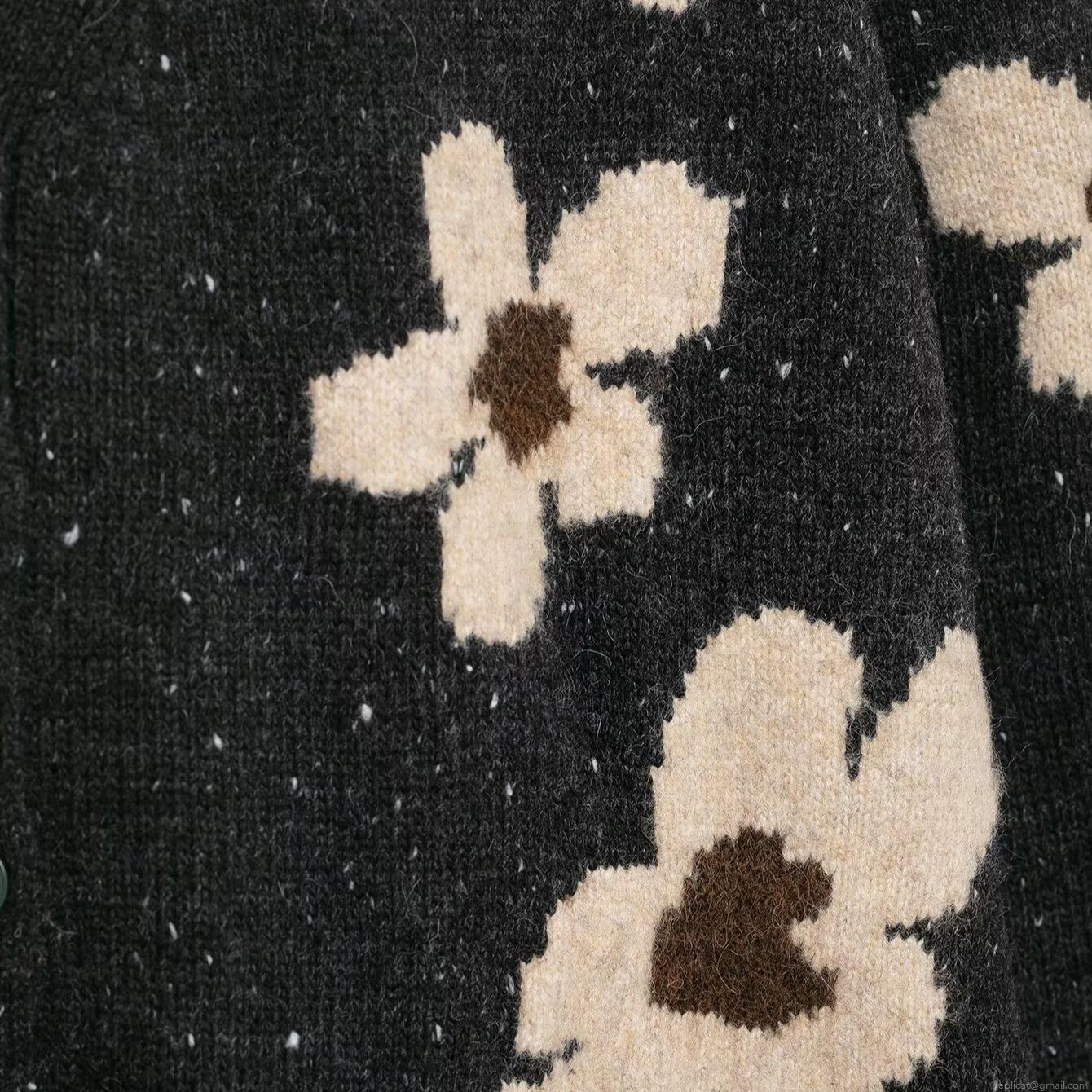 • Women's Vintage Floral Jacquard V-Neck Knit Cardigan 100% Polyester Button Up Long Sleeve Loose Casual Sweater Outerwear Coat