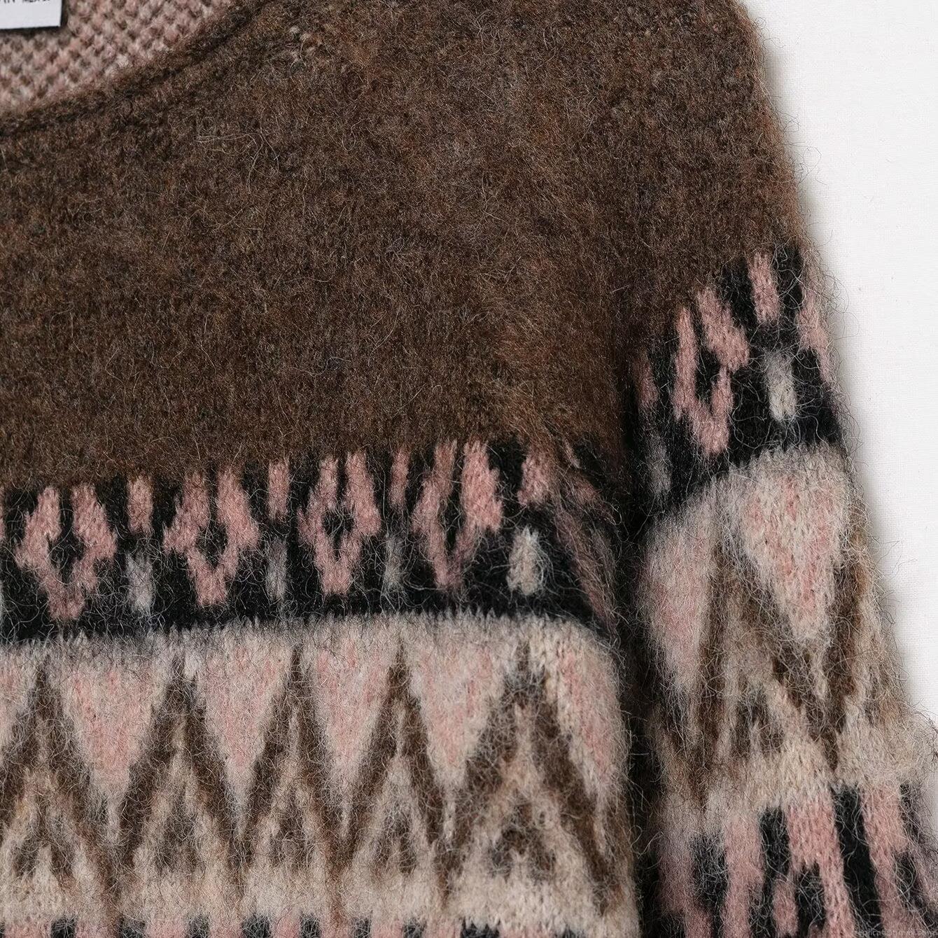 • Women's Vintage Round Neck Geometric Jacquard Knitted Sweater Fair Isle Loose Fit Long Sleeve Soft Polyester Knit Pullover Top Autumn Casual Wear