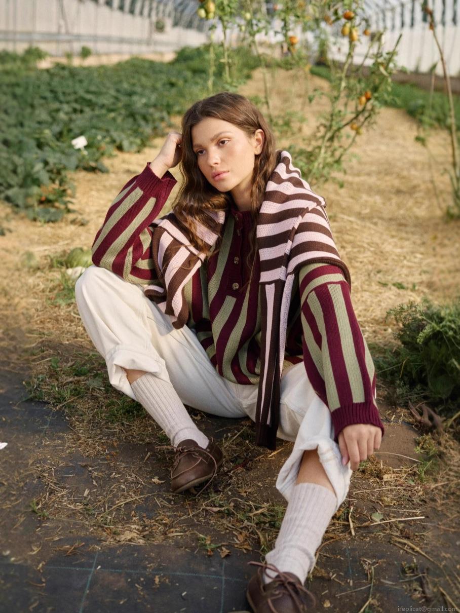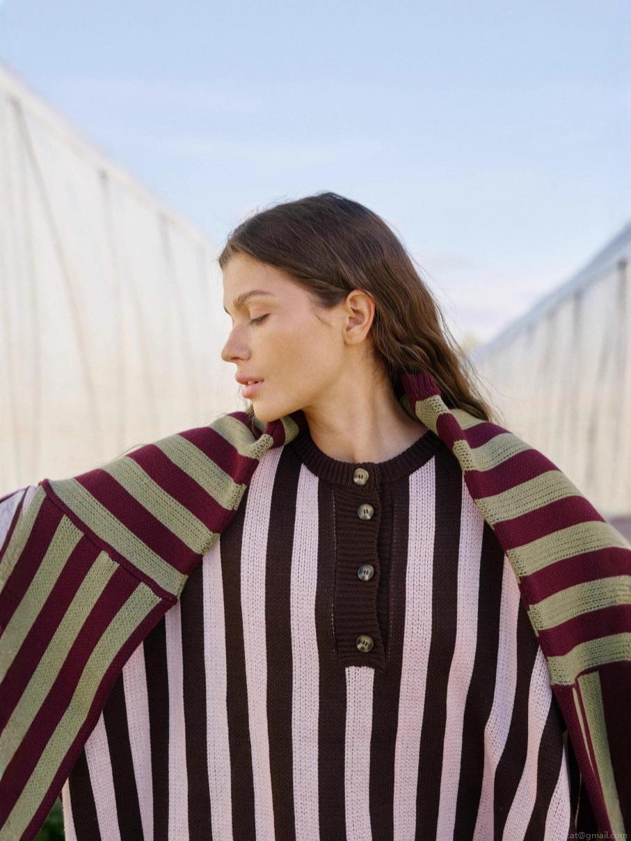 Stripe, Color Blocking, Knitted Texture, Half-front Button
