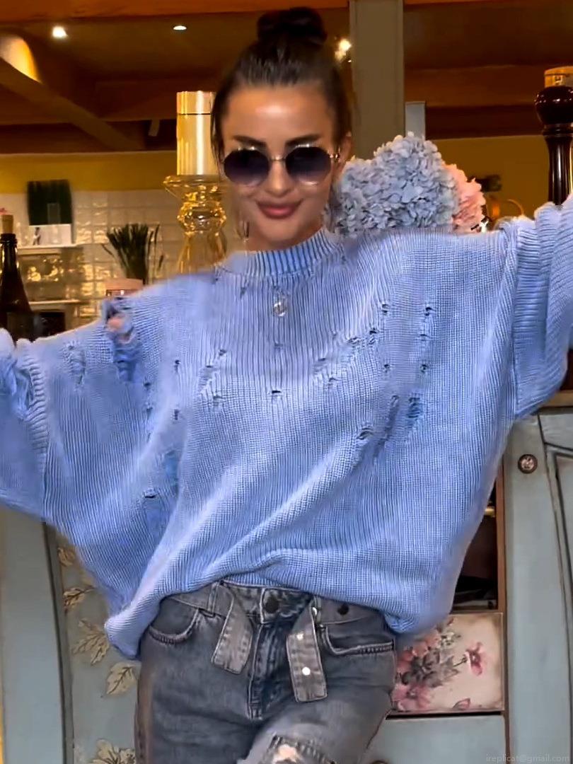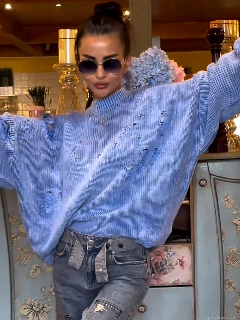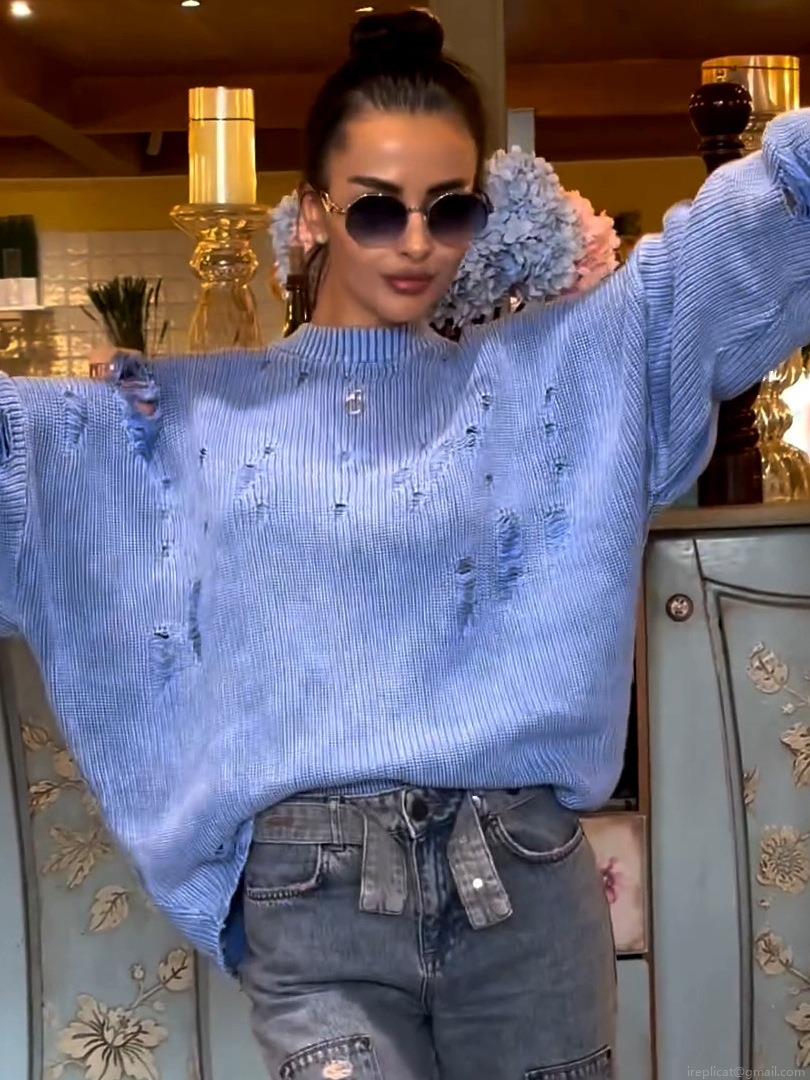• Women's Vintage Wasteland Distressed Knit Sweater Oversized Drop Shoulder Pullover Long Sleeve Lazy Style Worn-out Hole Aesthetic Top