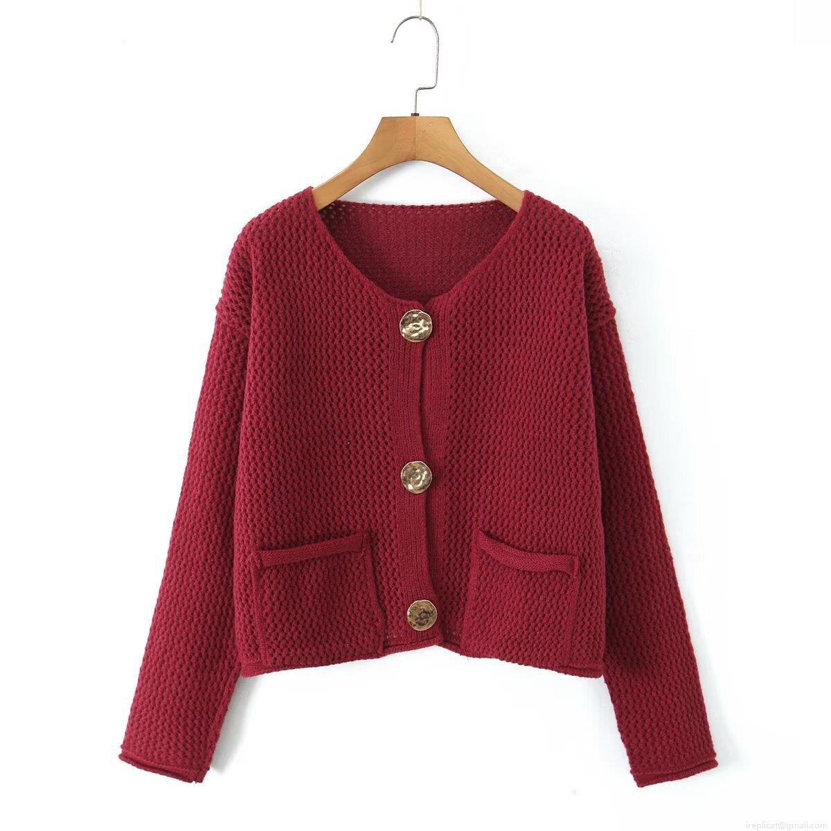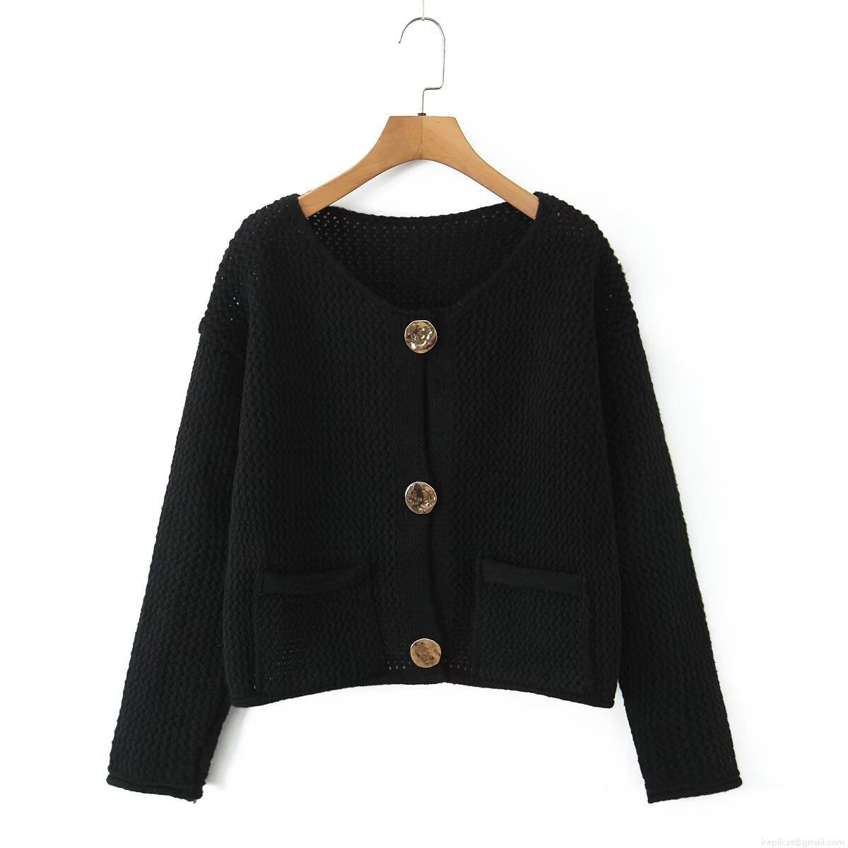 • Women's V-Neck Knit Cardigan Sweater With Gold Metal Buttons Thickened Solid Color Hollow Crochet Long Sleeve Loose Outerwear Top For Women Autumn Winter