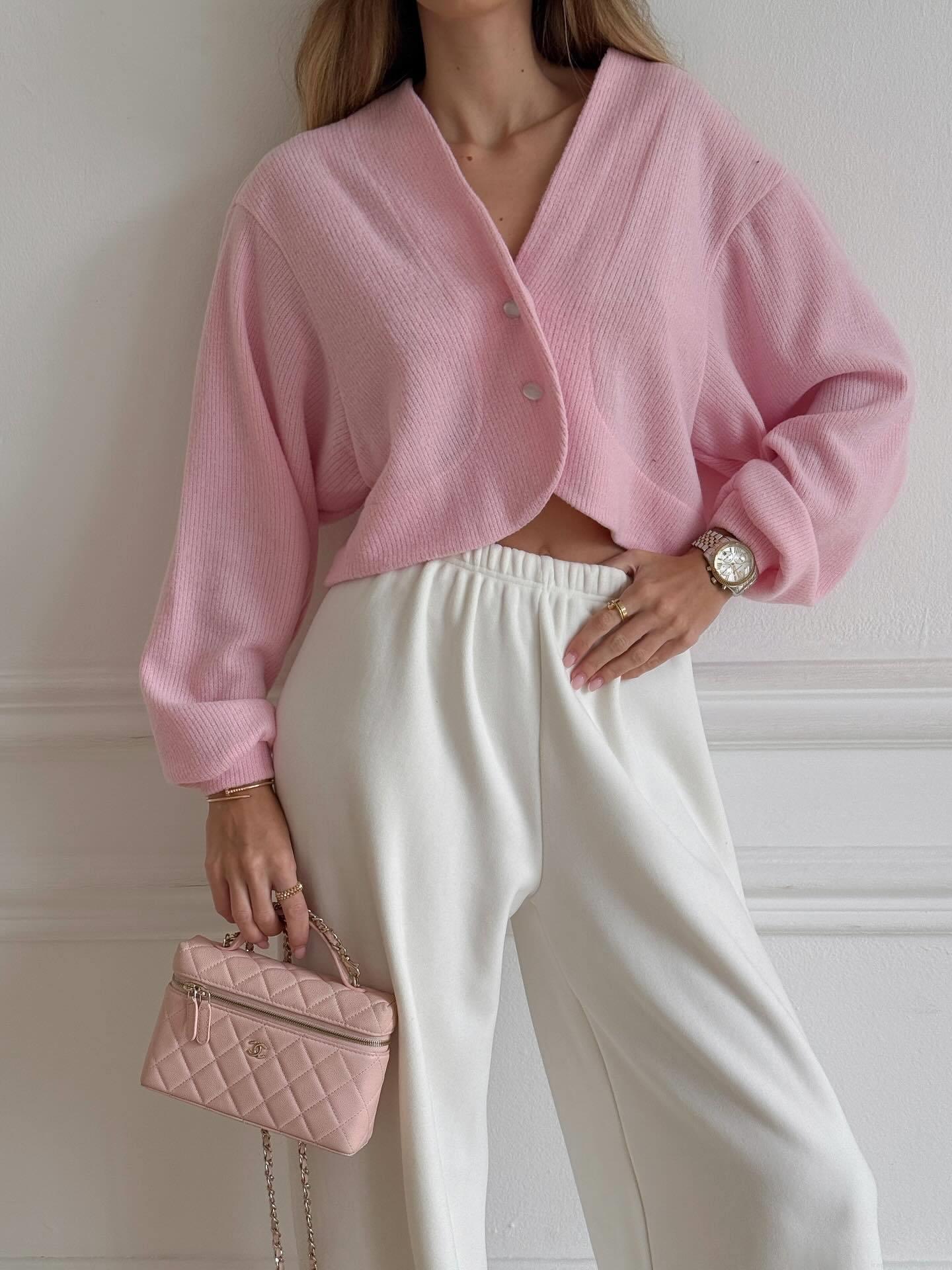 • Women's V-Neck Knitted Cardigan Sweater Acrylic Blend Button Down Long Sleeve Short Top Casual Streetwear Spring Autumn Outerwear