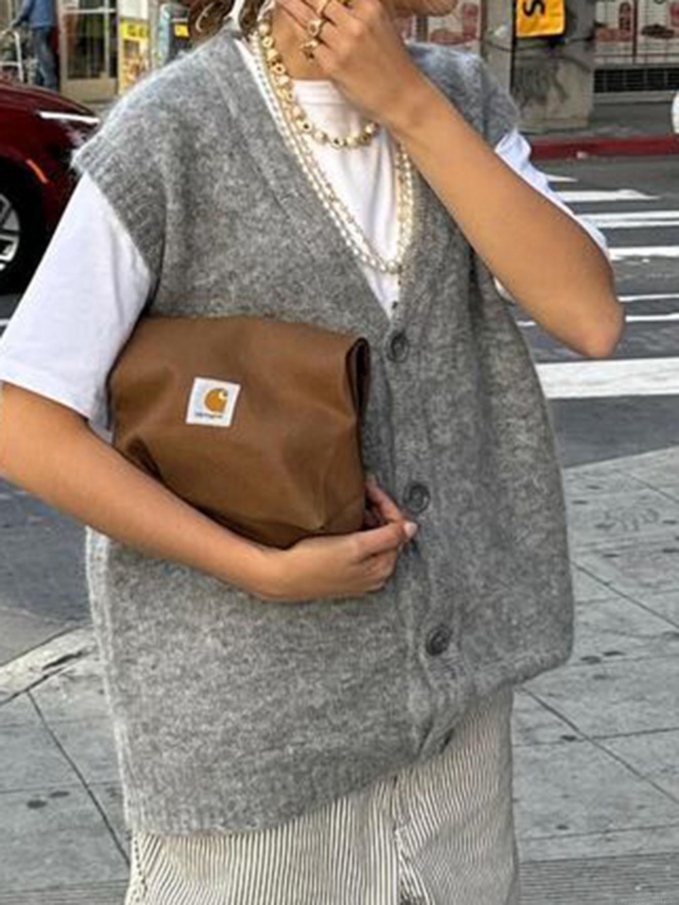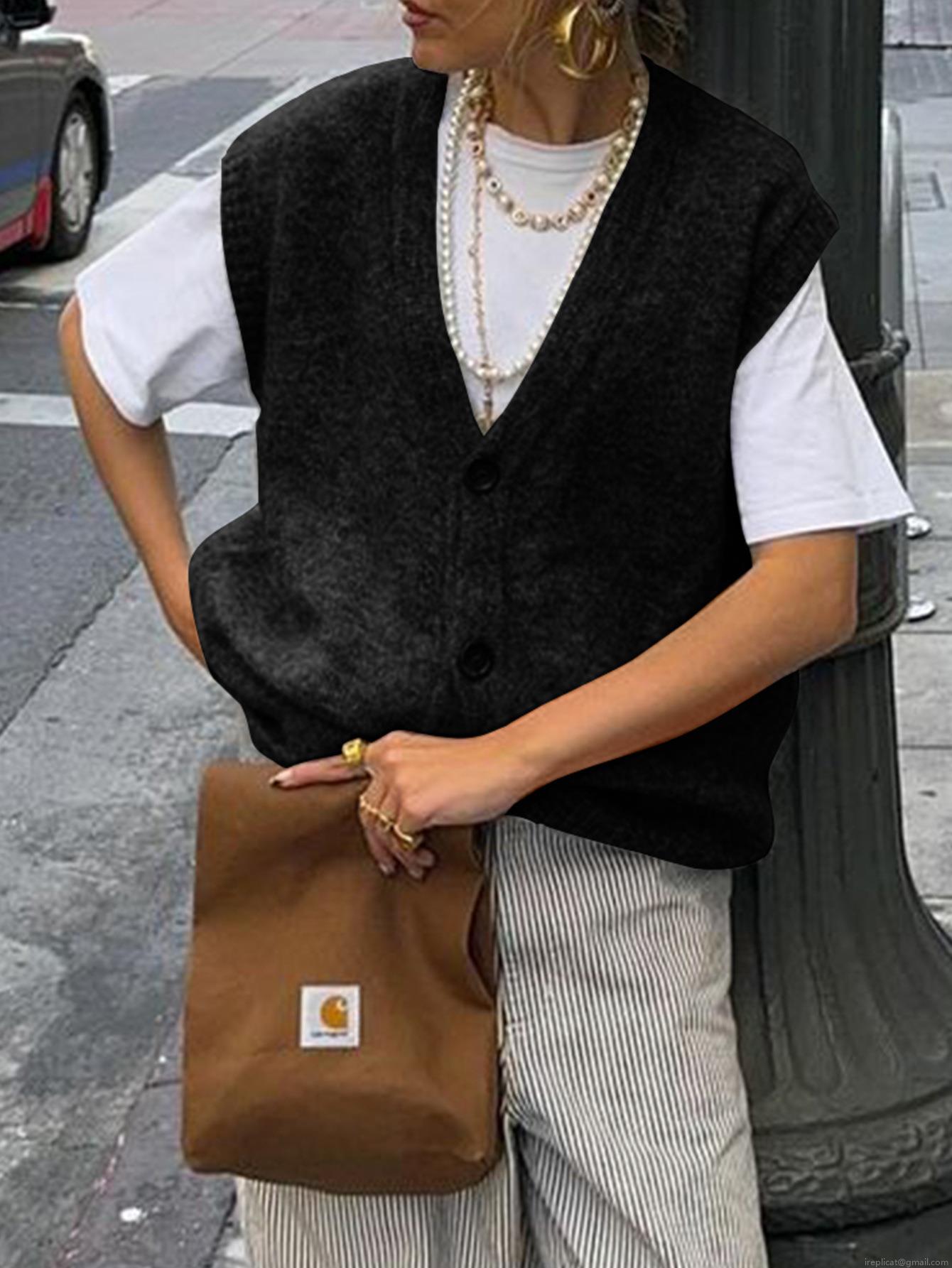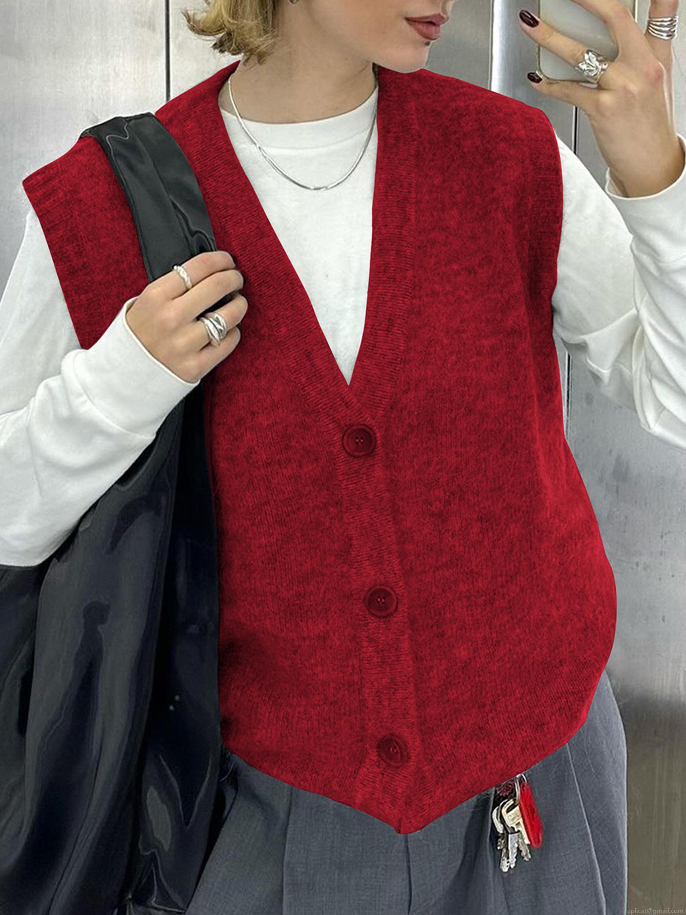 • Women's V-Neck Knitted Vest Button Up Loose Sleeveless Sweater Waistcoat Polyester Wool Blend Knitwear Casual Streetwear Outerwear For Women