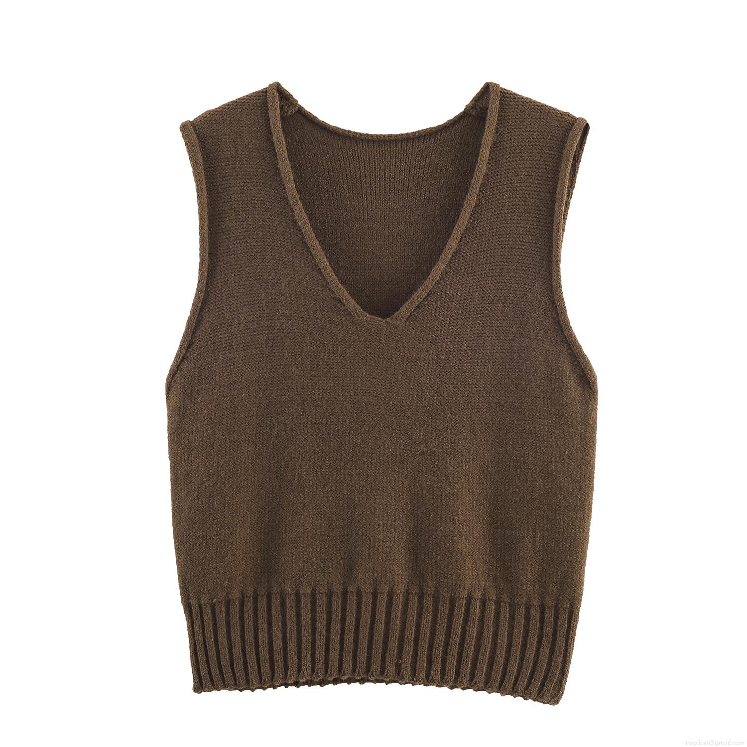 • Women's V-Neck Knitted Vest Sleeveless Solid Color Pullover Waistcoat Elegant Slim Fit Short Knit Tank Top For Daily Dating Polyester Casual Sweater Vest