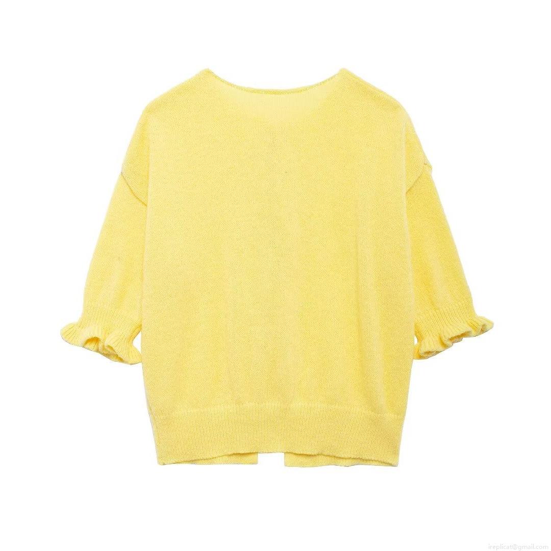 • Women's Yellow Knit Cardigan Sweater Polyester Tie-up Bow Ruffle Cuffs 3/4 Sleeves Round Neck Solid Color Short Top Casual Sweet Style