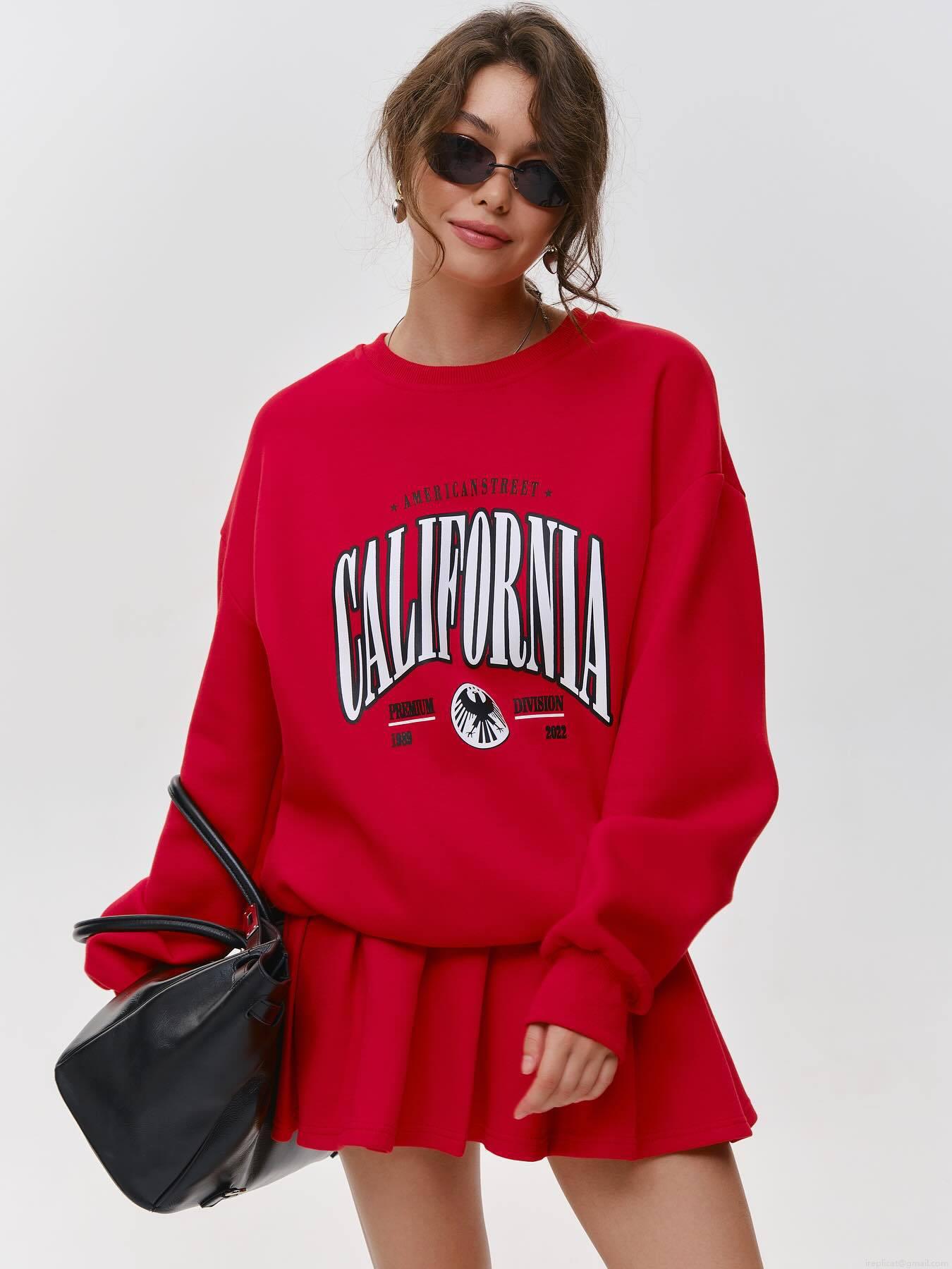 • American Vintage Letter CALIFORNIA Print Eagle Crewneck Sweatshirt Cotton Loose Long Sleeve Pullover Women Fashion Streetwear Top Two Piece Skirt Set