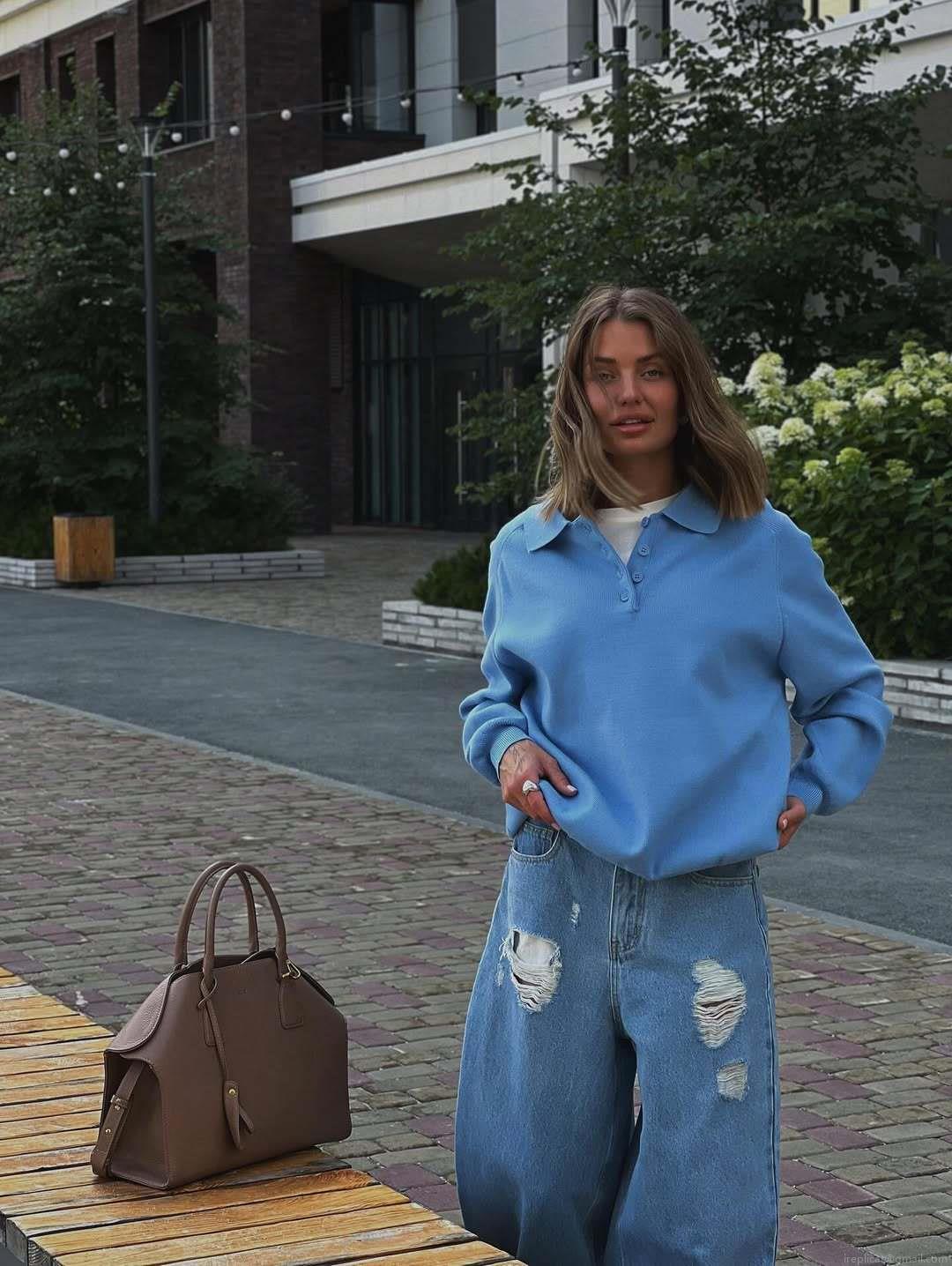 • Women's 100% Cotton Polo Sweatshirt Solid Color Loose Fit Long Sleeve Half Zip Pullover Fall Streetwear Casual Top For Women